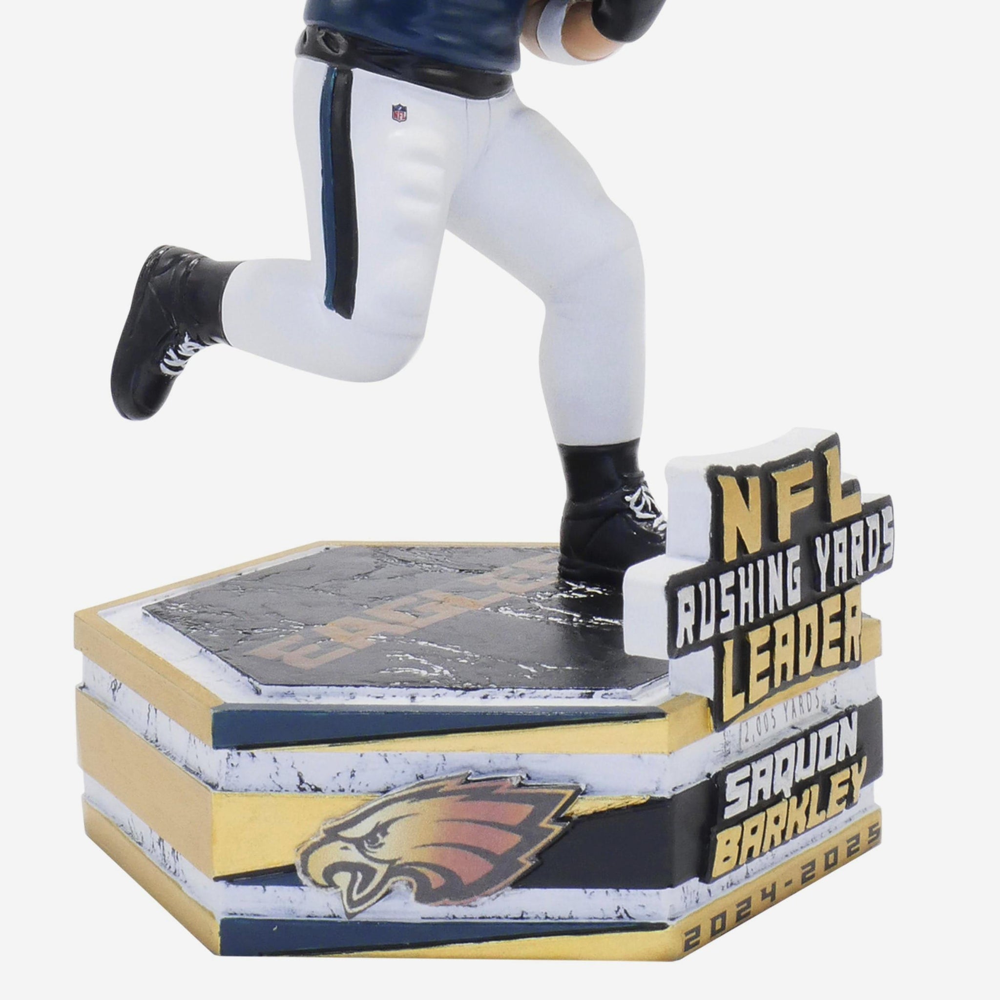• “NFL RUSHING YARDS LEADER” and “X,XXX YARDS” text displays on front of base to put his milestone mark in the proper context