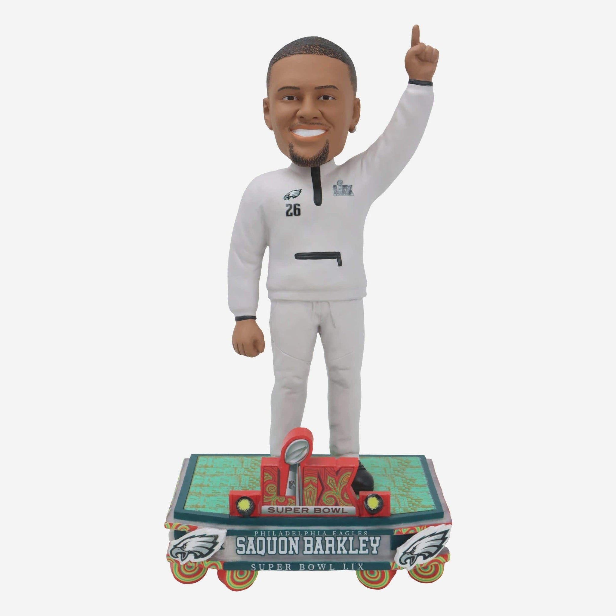Laissez les bon temps rouler! Bring the spotlight from press day in the Big Easy to your collection with this Saquon Barkley Philadelphia Eagles Super Bowl LIX Outfit Bobblehead.