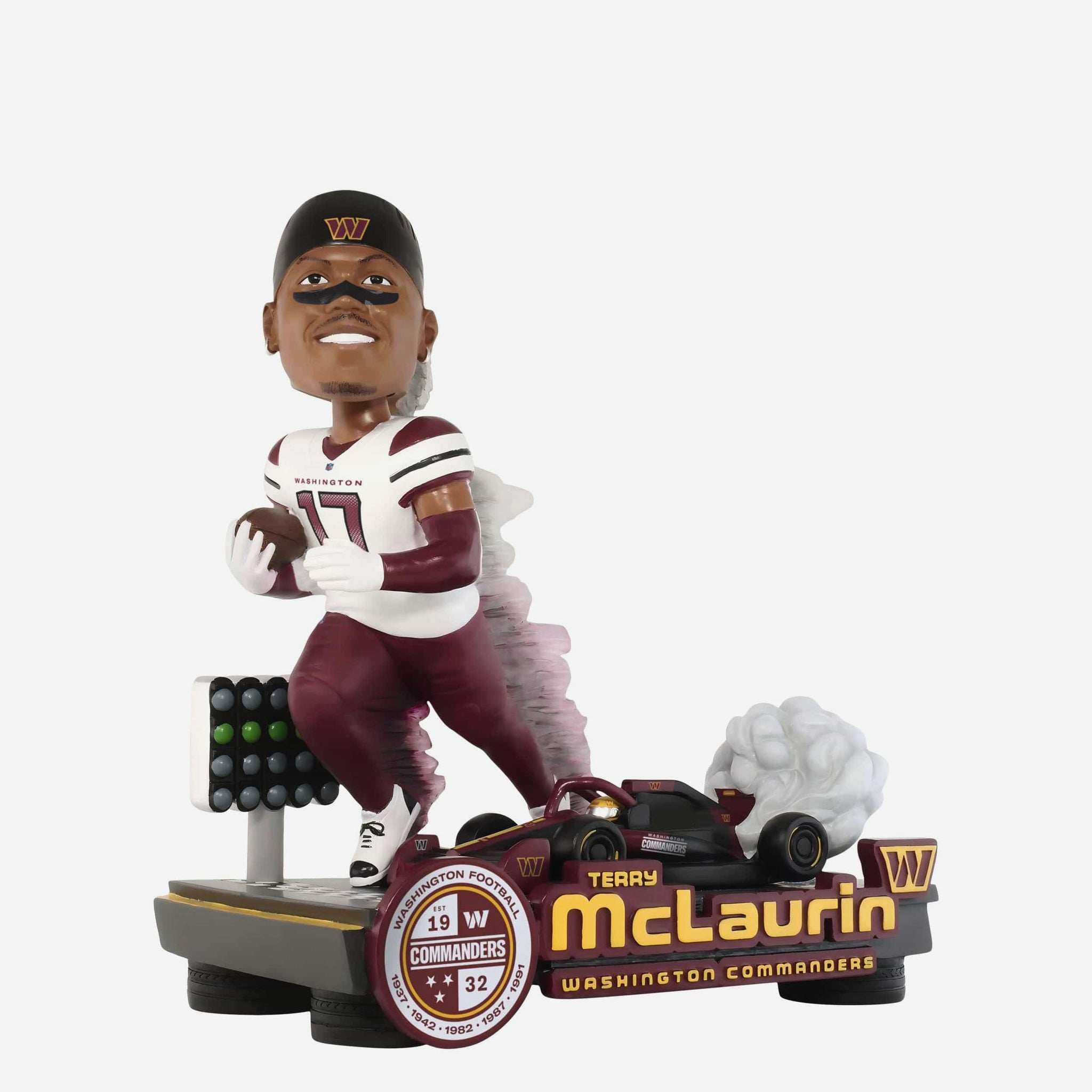 Shift your fandom into high gear with this Terry McLaurin Washington Commanders Nickname Bobblehead, a high-octane collectible celebrating one of the NFL’s most explosive playmakers.
