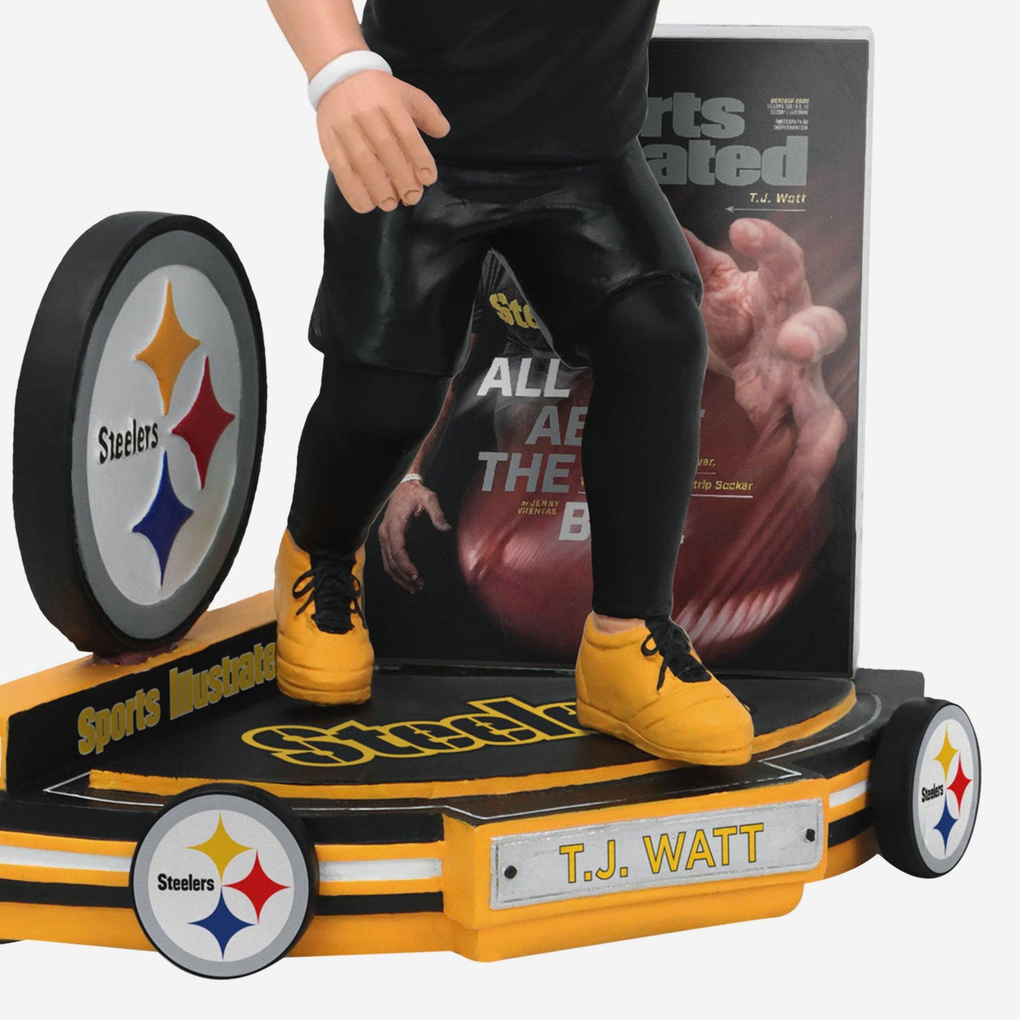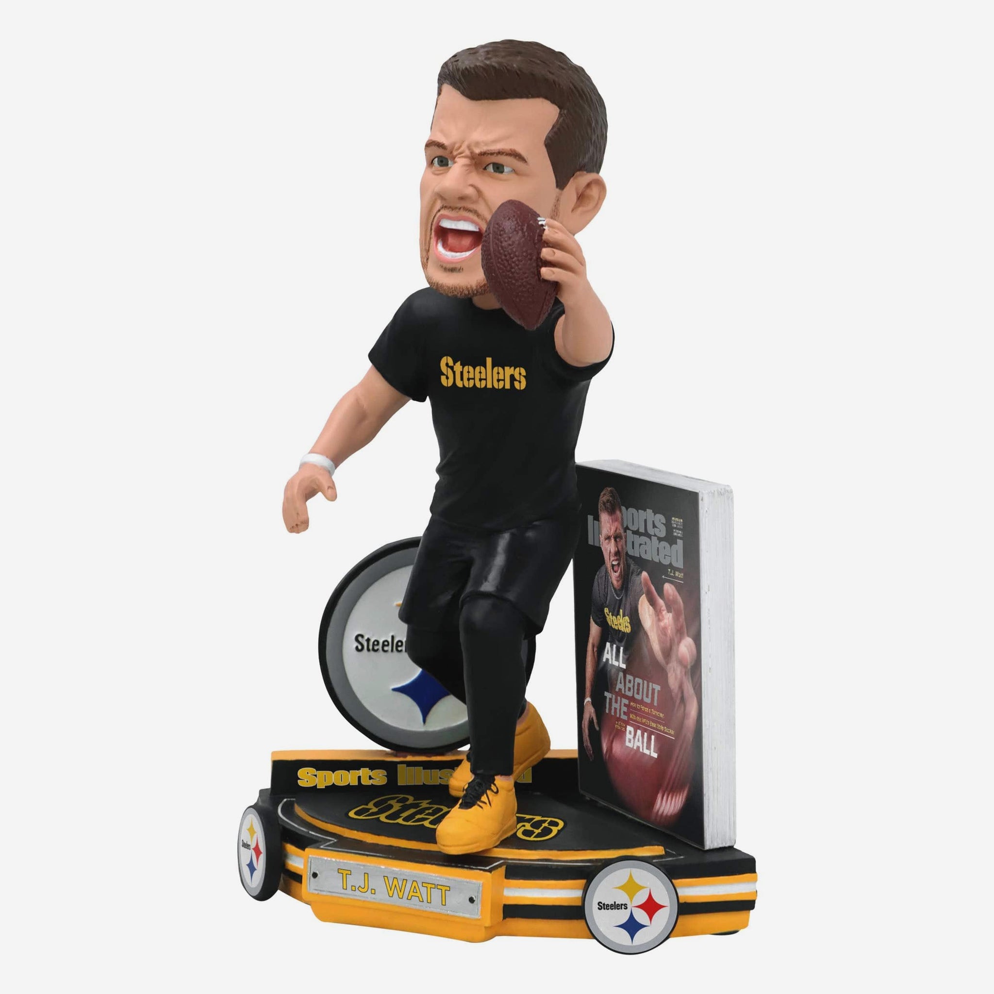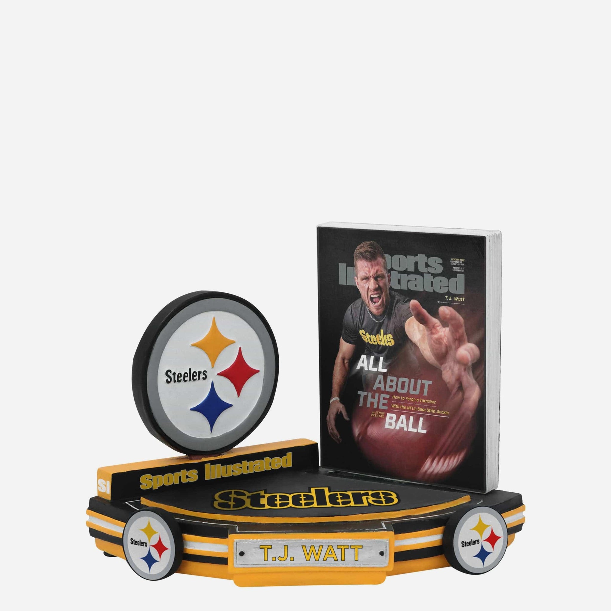 T.J. Watt is all about that ball! Add his iconic Sports Illustrated cover to your collection with this TJ Watt Pittsburgh Steelers All About The Ball Sports Illustrated Cover Bobblehead.