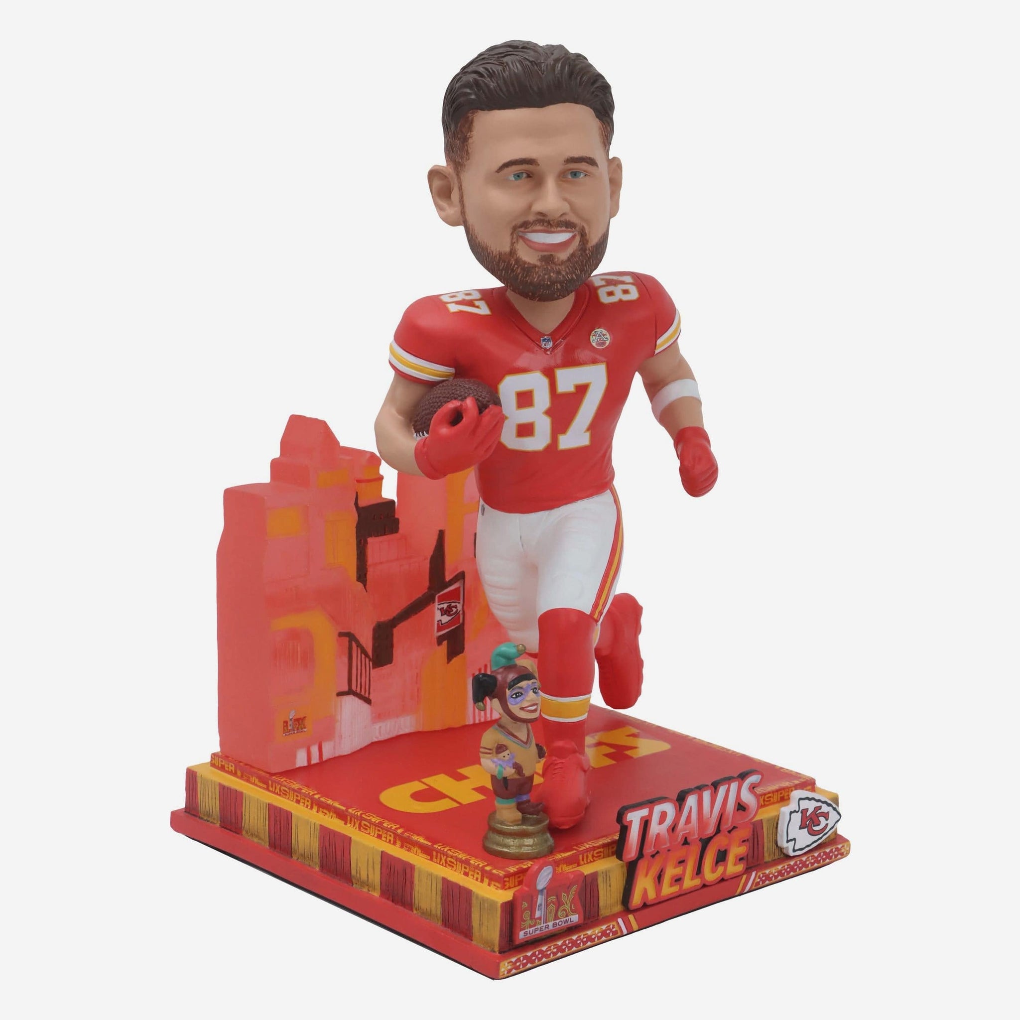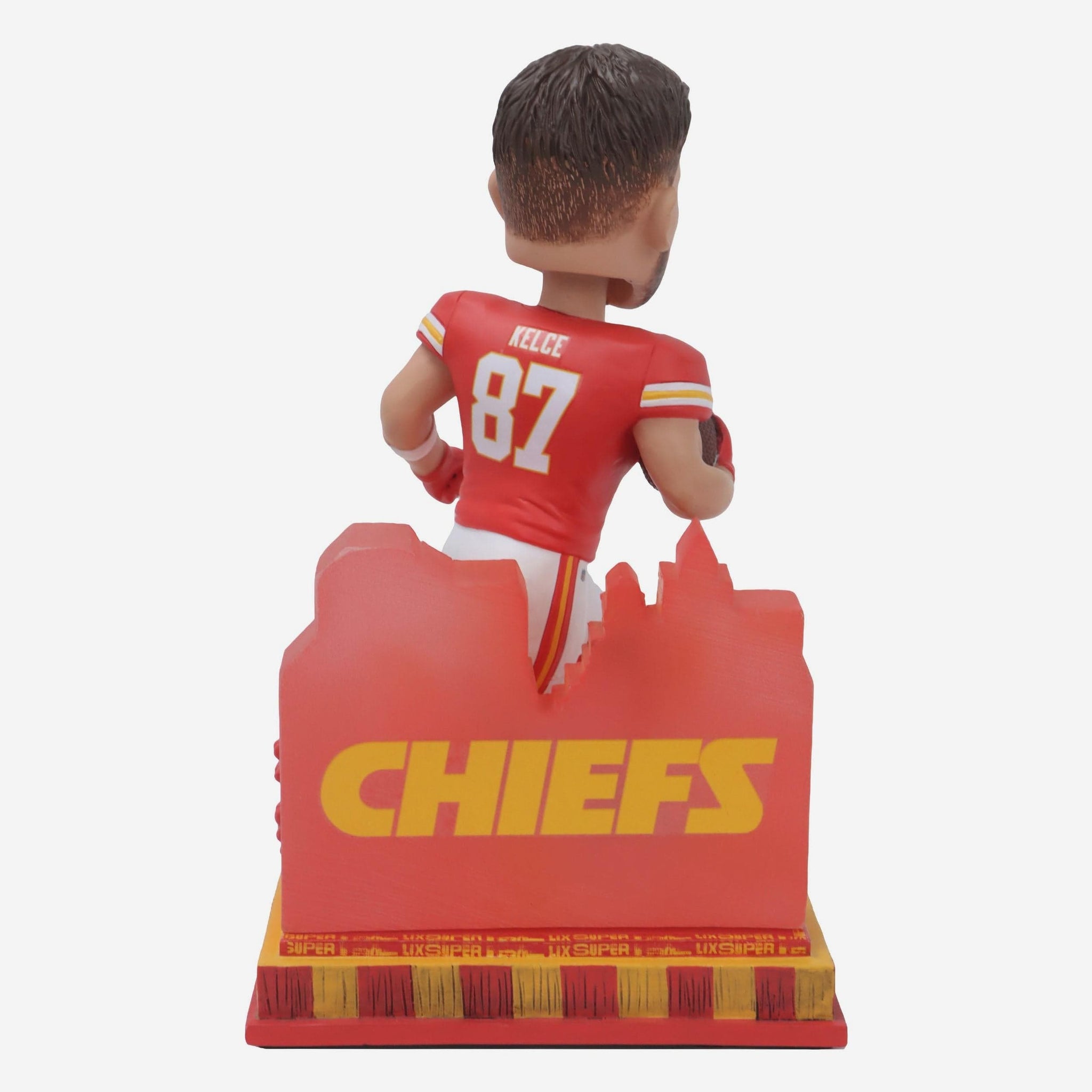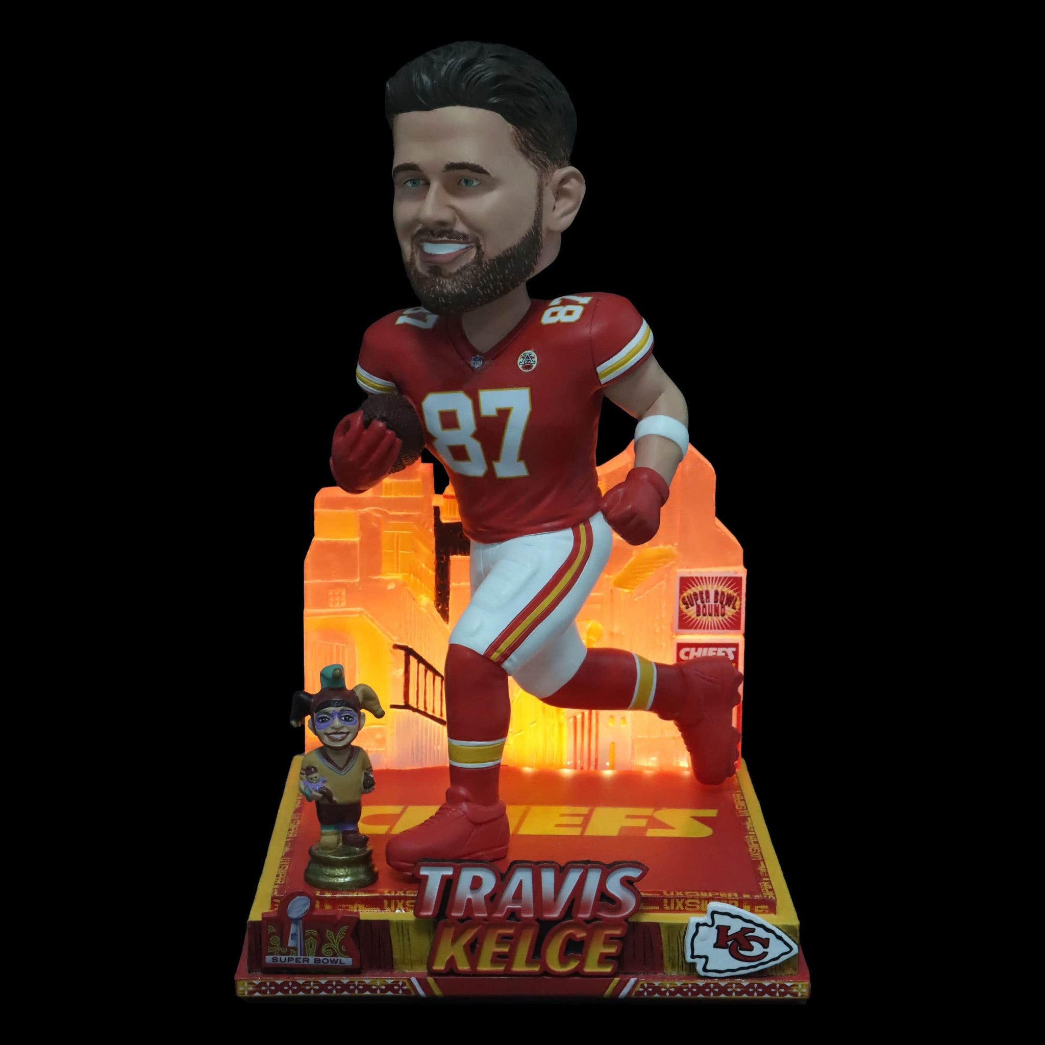 CHIEFS KINGDOM! KC is heading back to the big game, and you can get ready to defend your title with the Travis Kelce Kansas City Chiefs Super Bowl LIX Bound Bobblehead.