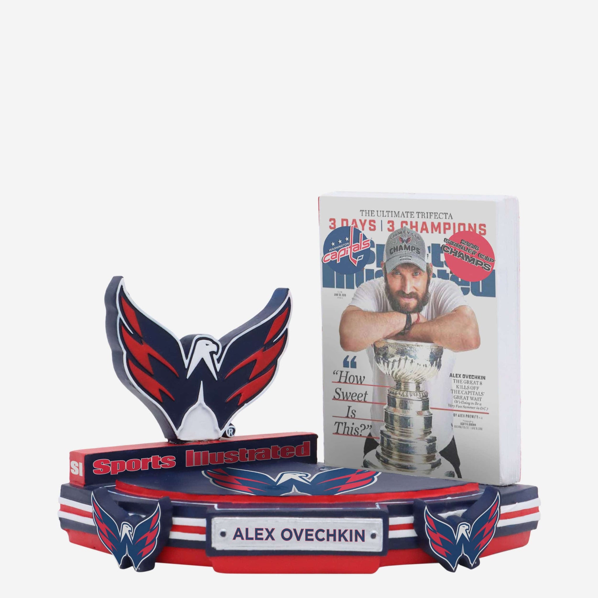 June 8, 2018: The Great 8 ends Washington's great wait. How sweet is this? As sweet as it gets when you re-live the headline-worthy moment with the Alex Ovechkin Washington Capitals Sports Illustrated Cover Bobblehead.