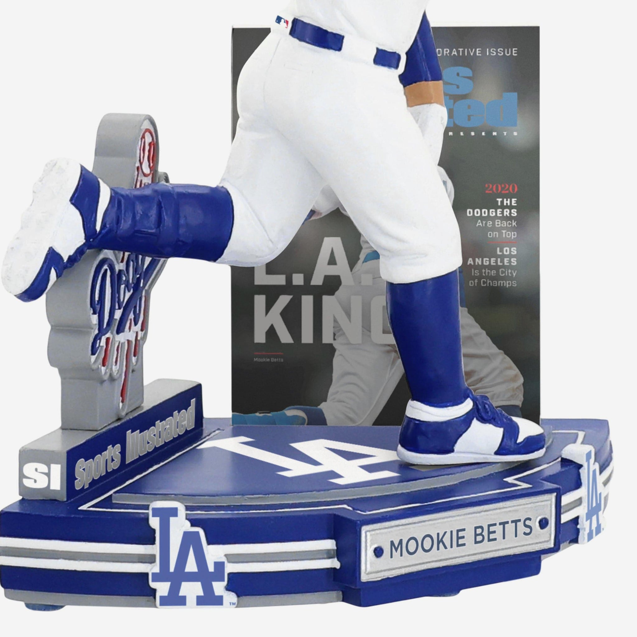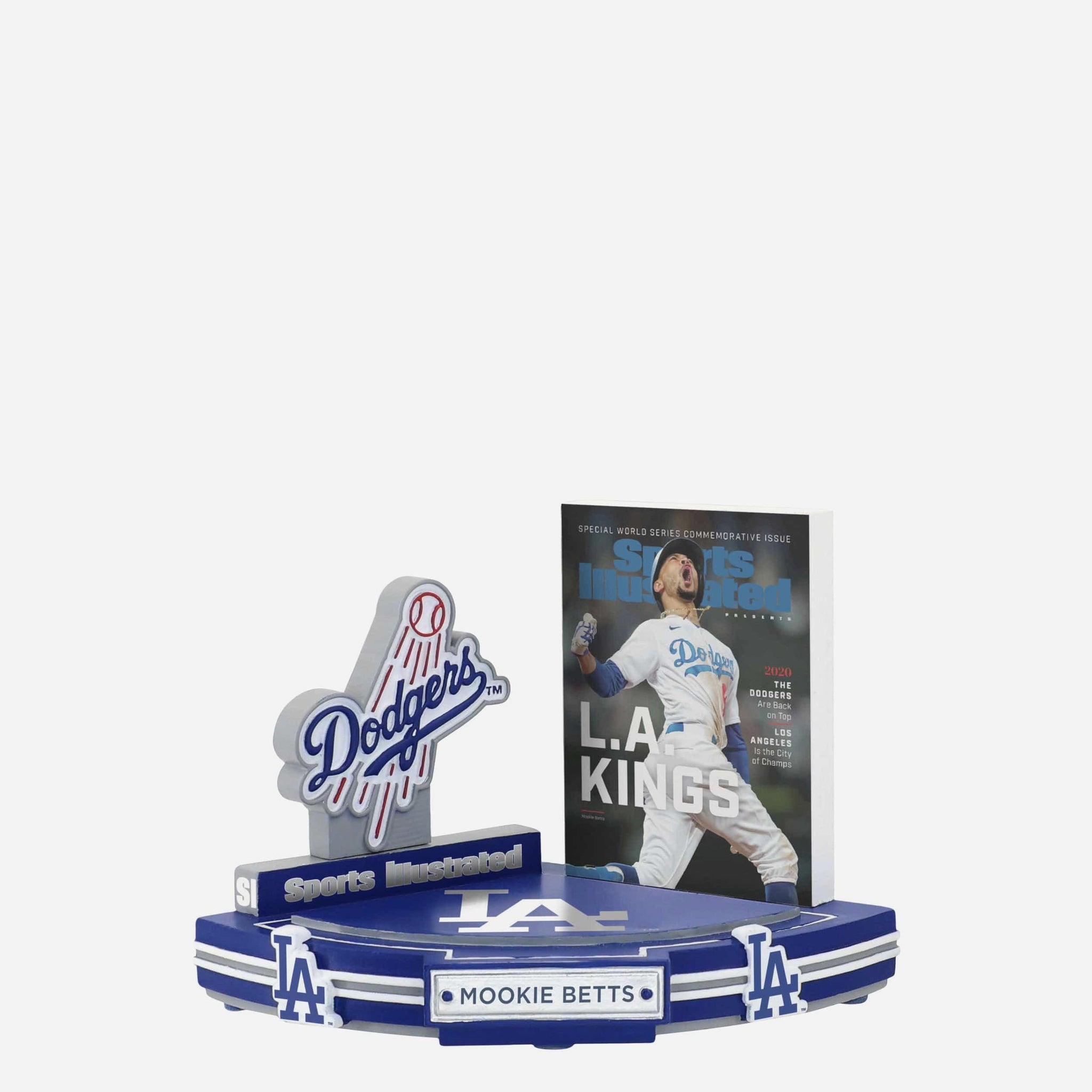 Commemorate a championship moment with crossover flair in this Mookie Betts Los Angeles Dodgers LA Kings 2020 World Series Commemorative Sports Illustrated Cover Bobblehead. Celebrating an iconic Sports Illustrated cover and a World Series triumph, this collectible captures the energy, confidence, and star power that defined Mookie Betts on baseball’s biggest stage.