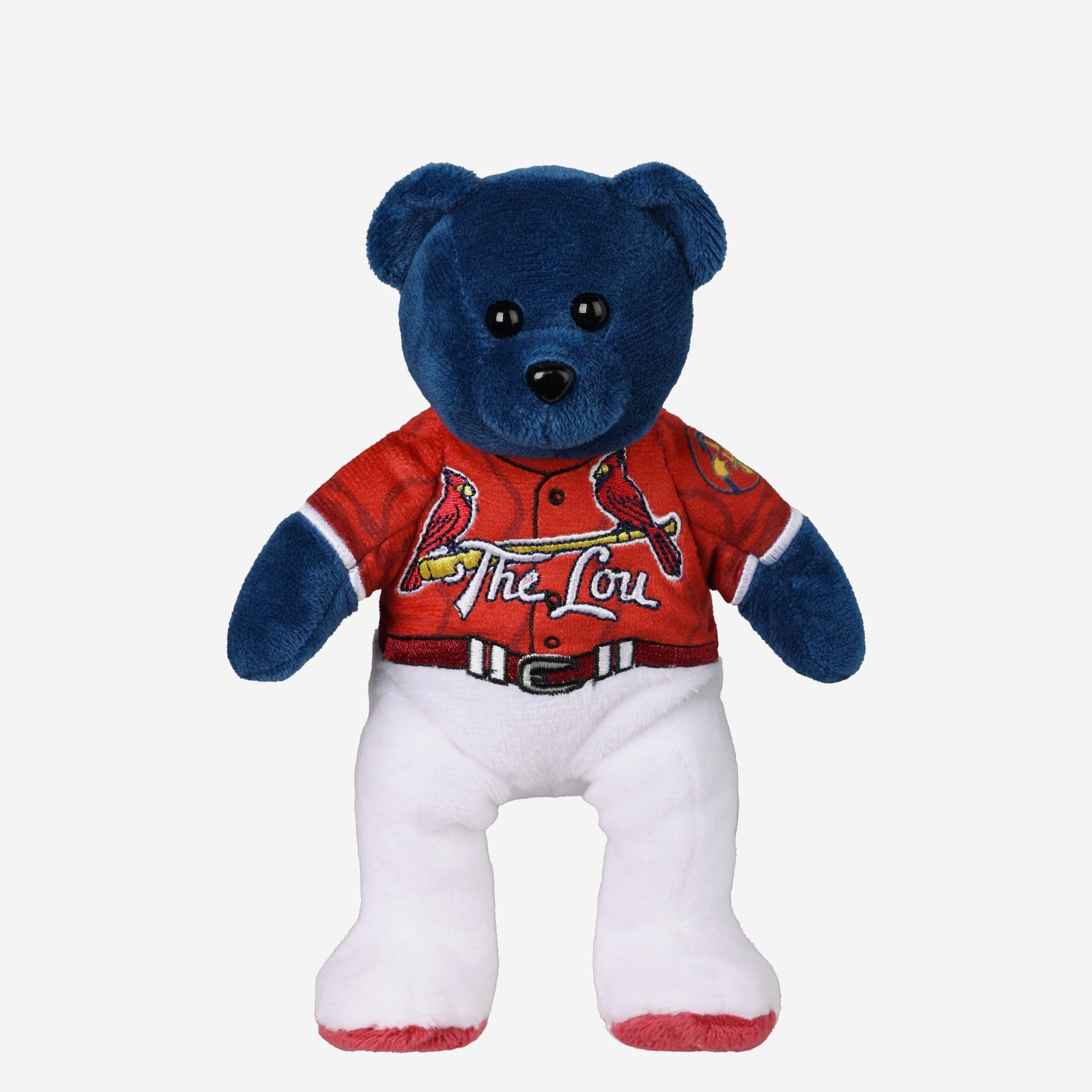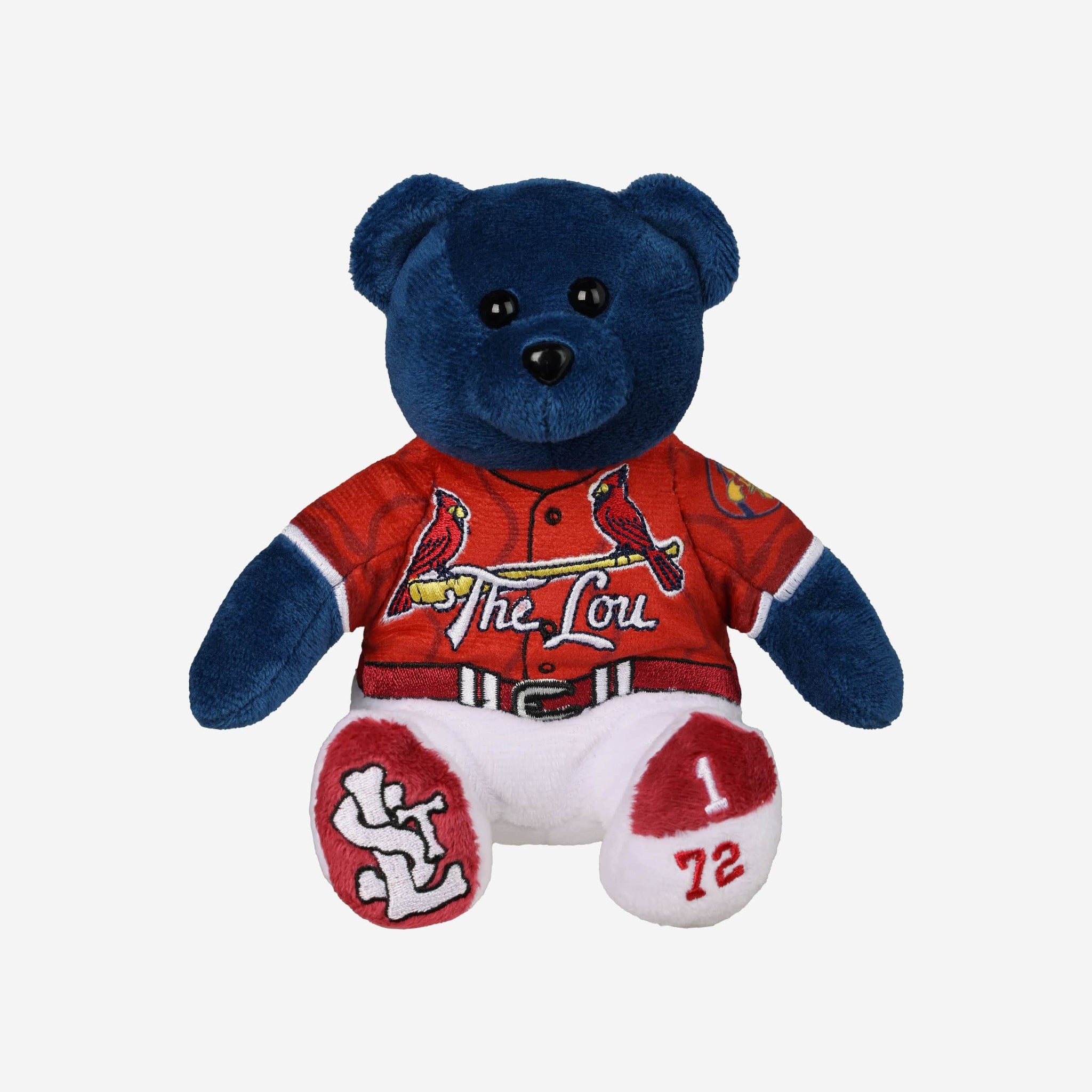 - Plush bear portrayed wearing the Cardinals' red alternate gameday uniform that will look great in your collection