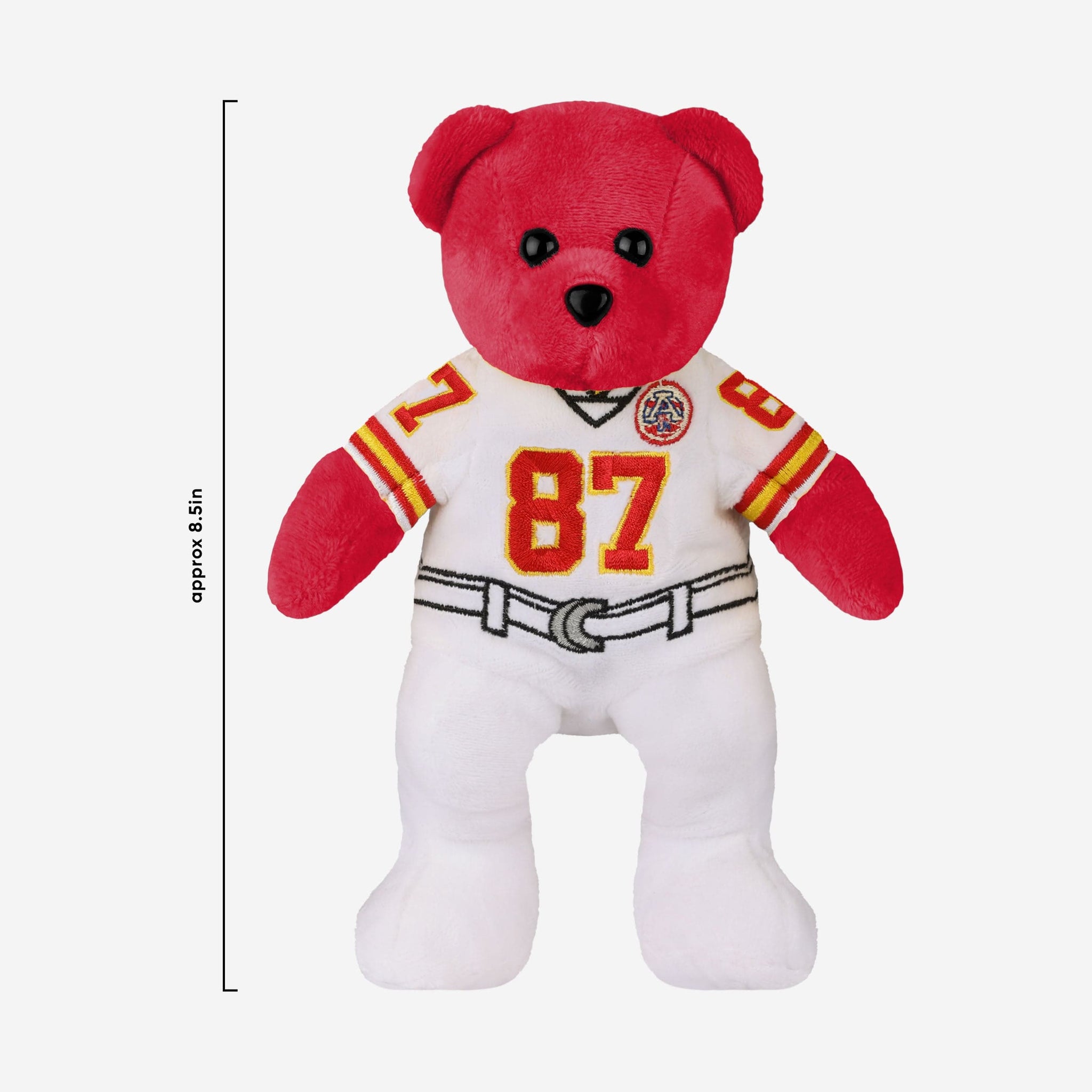 A limited-edition collectible you can’t *bear* to miss out on! Take things from the gridiron to your fancave with this Travis Kelce Kansas City Chiefs Away Uniform Team Beans Embroidered Player Bear. Only 72 made!