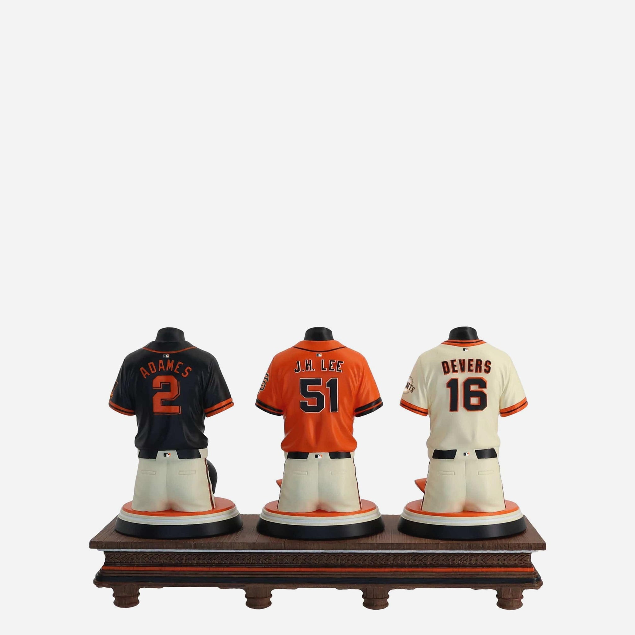 - Portrays Rafael Devers, Jung Hoo Lee, and Willy Adames player jersey busts with matching caps, combining for one epic display of team spirit