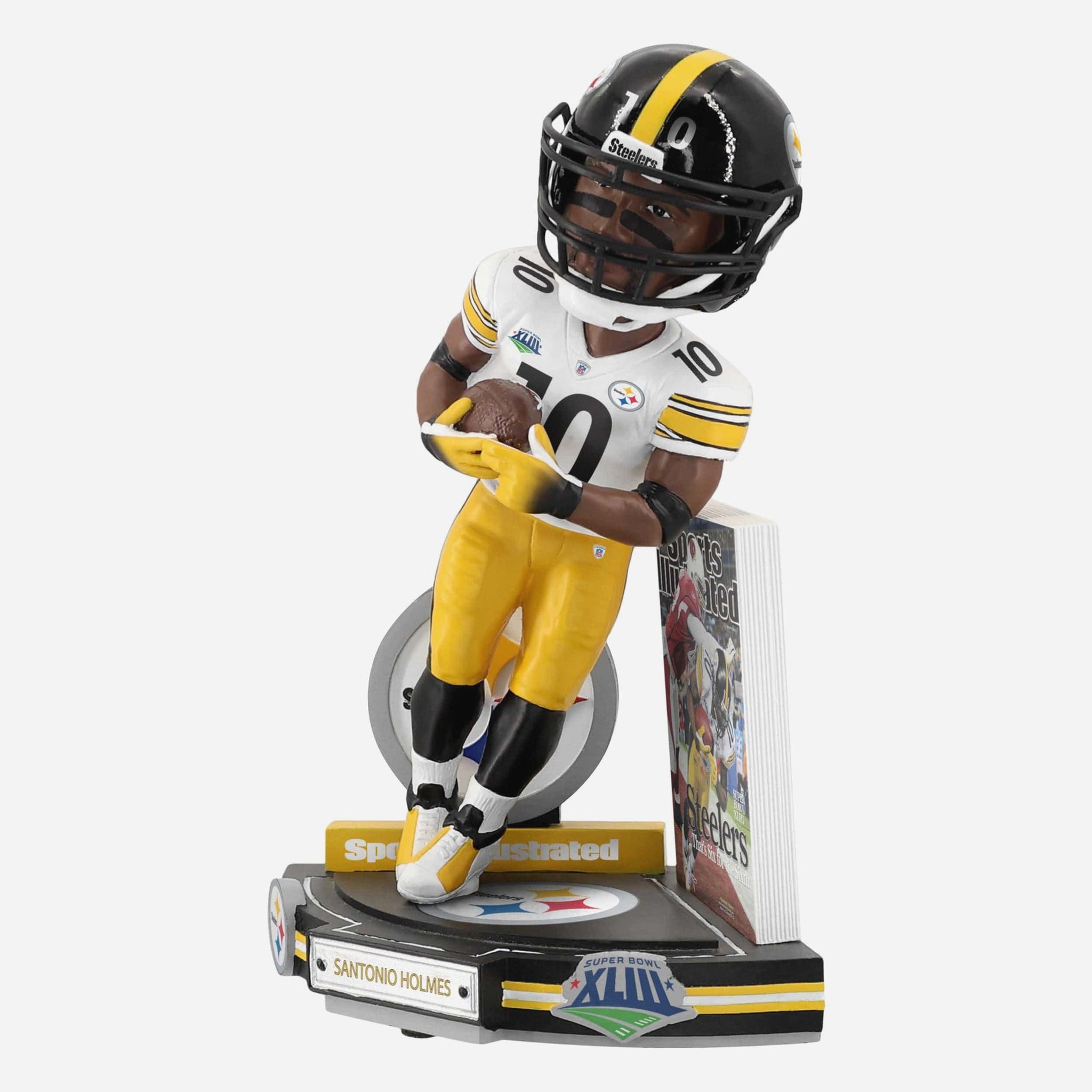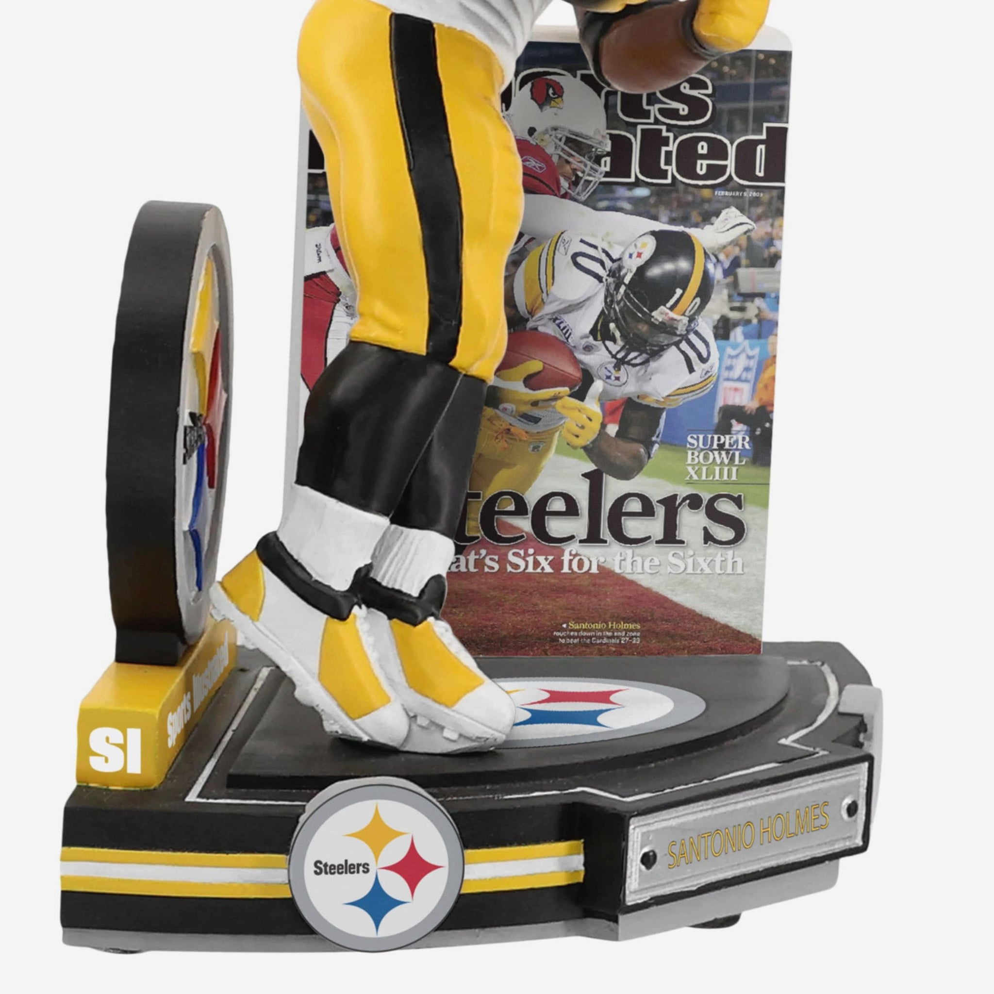 Relive one of the greatest moments in Super Bowl history with this Santonio Holmes Pittsburgh Steelers Six For Sixth Super Bowl XLIII Sports Illustrated Cover Bobblehead!