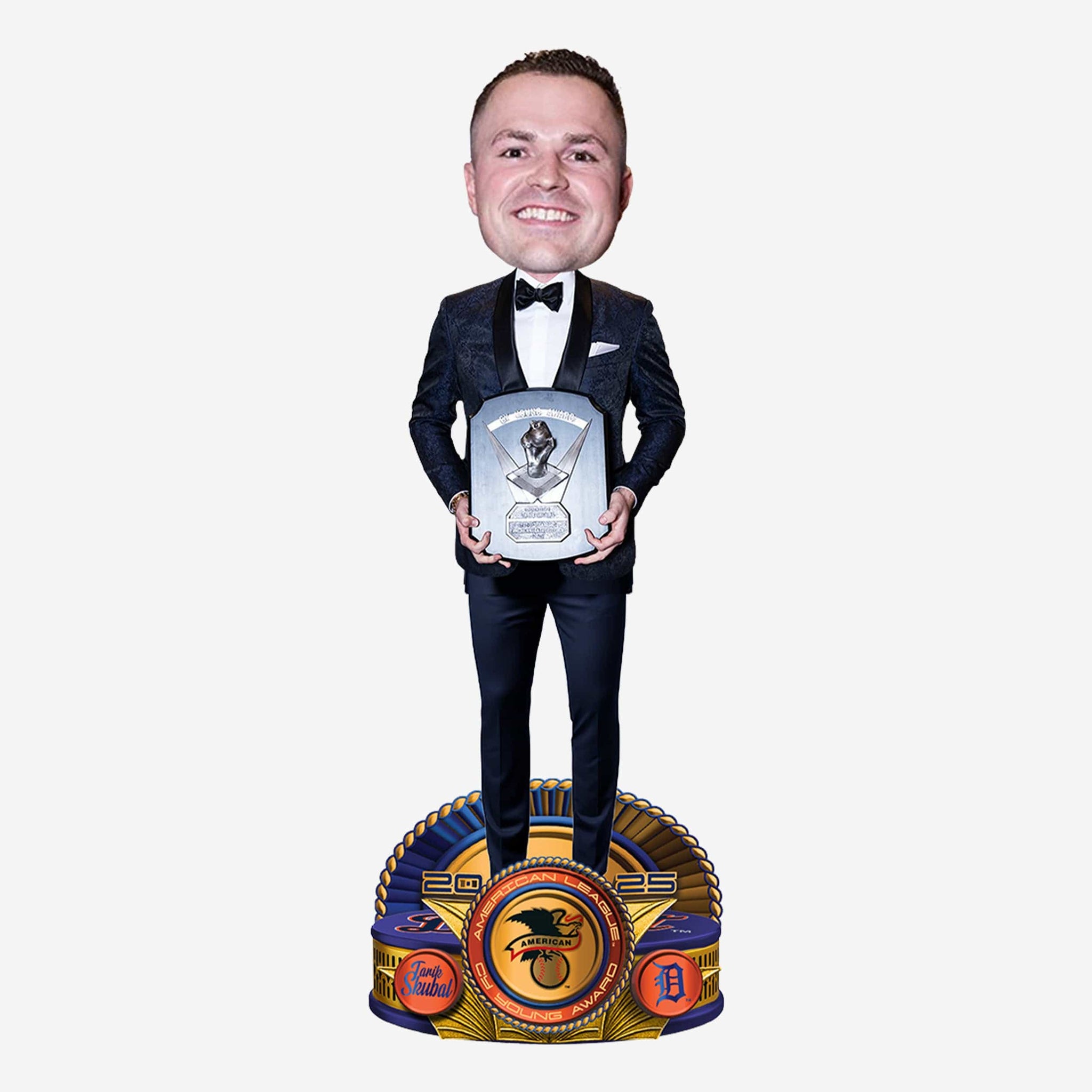 Celebrate pitching dominance in the American League with this Tarik Skubal Detroit Tigers 2025 AL Cy Young Award Suit Bobblehead! Featuring a polished award-night look, this bobblehead commemorates a season that stood above the rest.