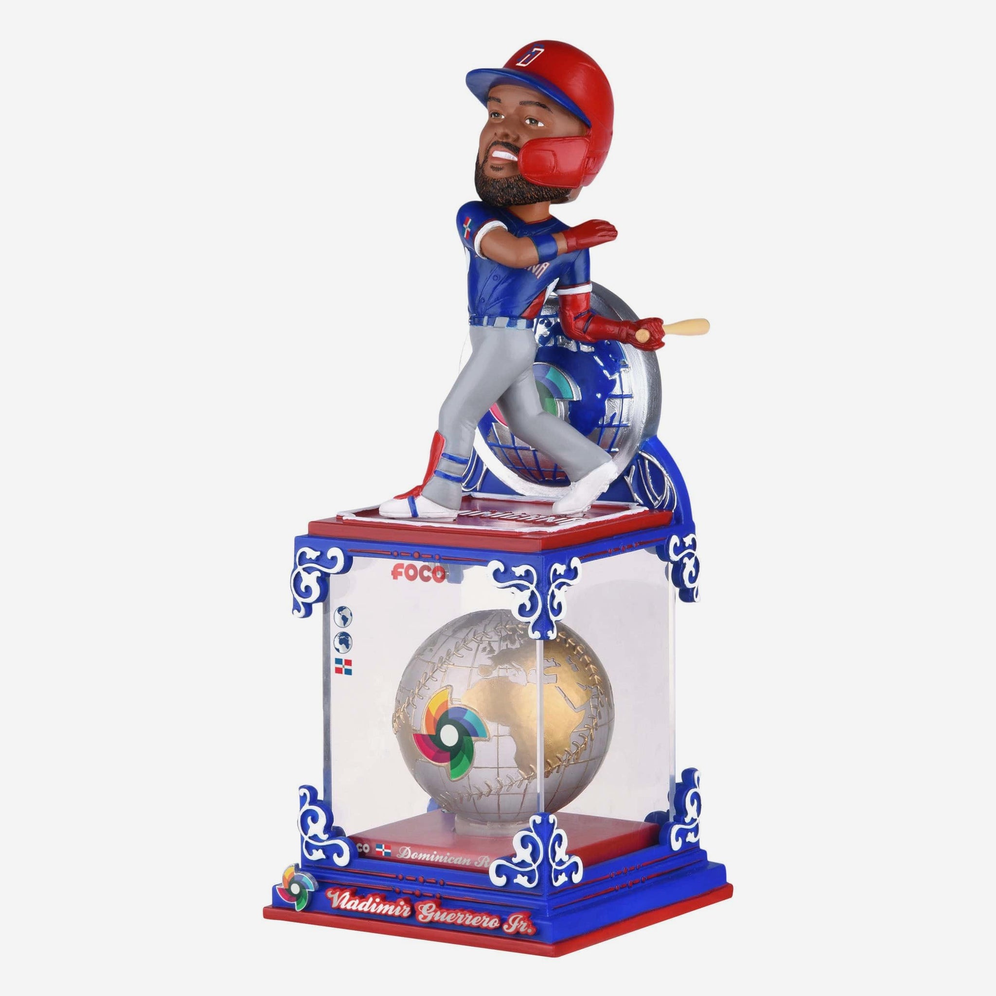 Bring the entire world of baseball to your collection with the Vladimir Guerrero Jr. Dominican Republic 2026 World Baseball Classic Globe Case Bobblehead. Showcasing Guerrero Jr. representing his country on baseball’s biggest international stage, this collectible pairs tournament pride with a striking globe display that celebrates the global reach of the WBC.