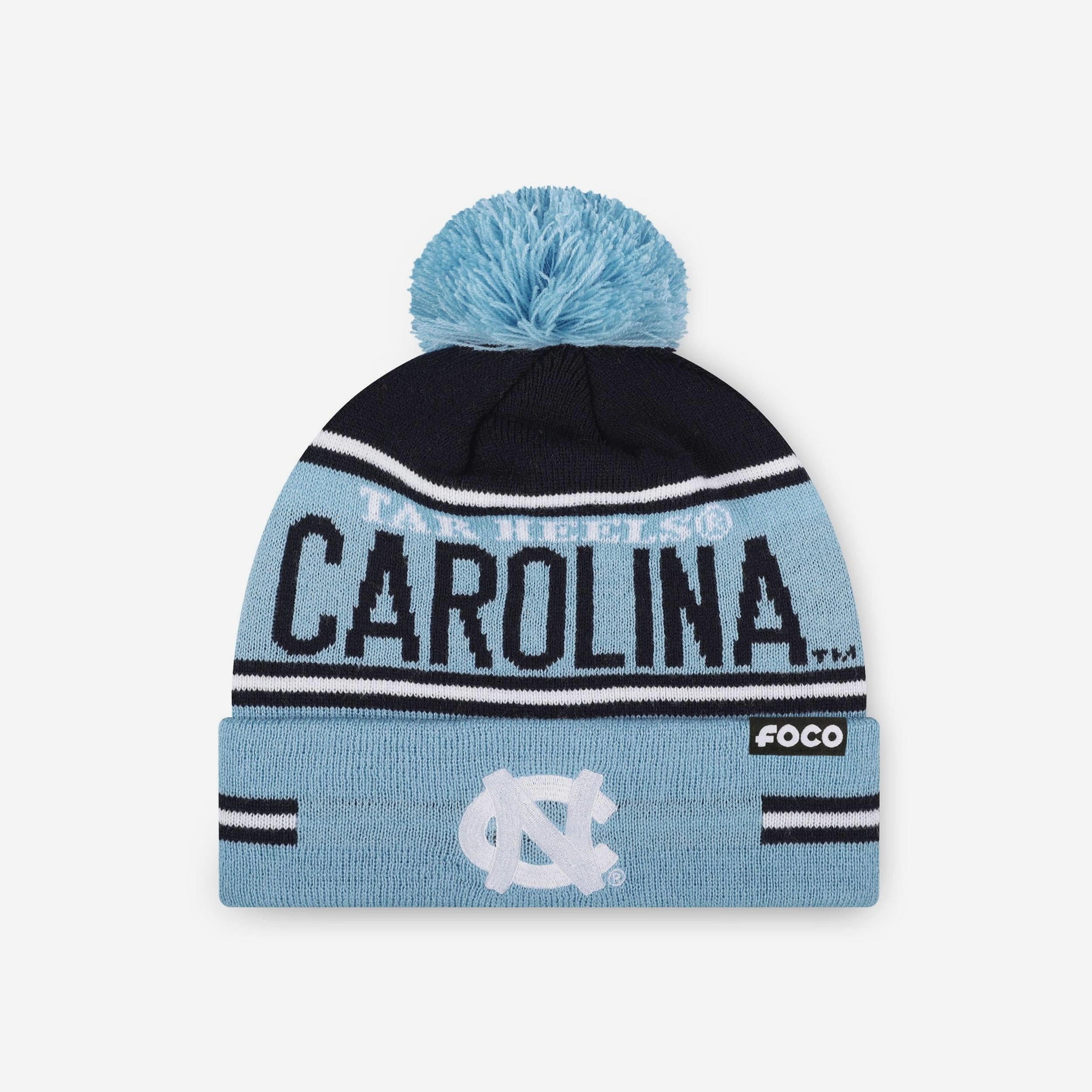 North Carolina Tar Heels Big Wordmark Stripe Pom Beanie FOCO - FOCO.com