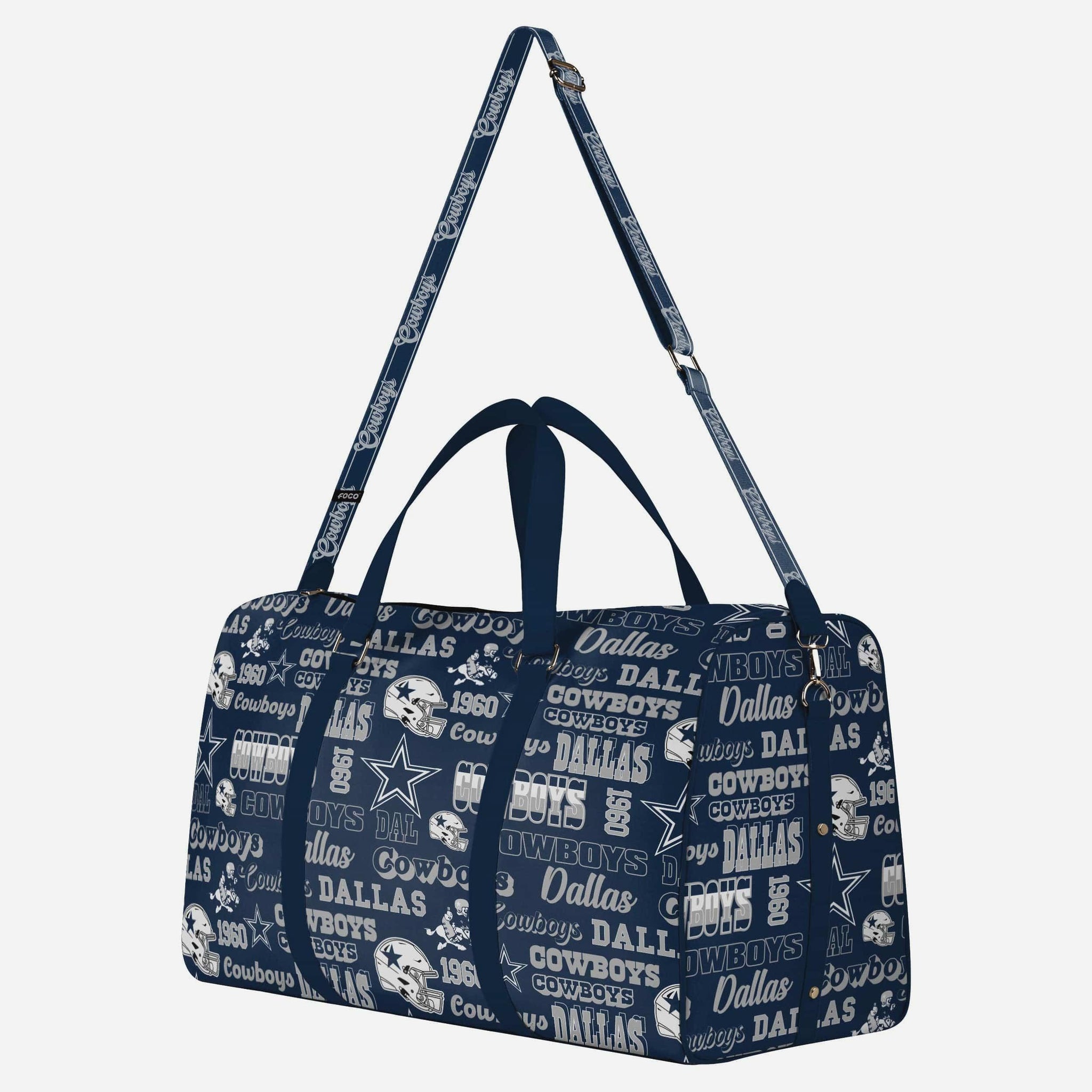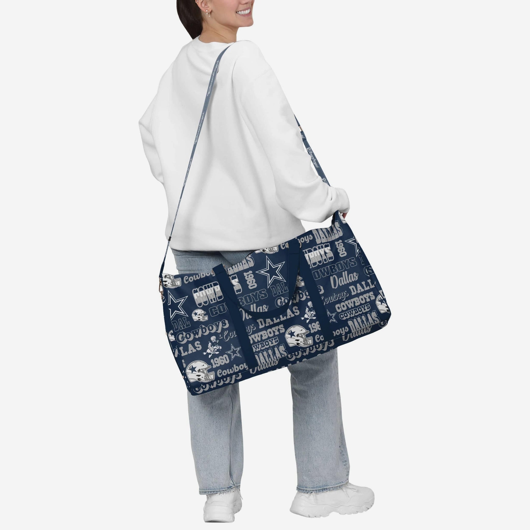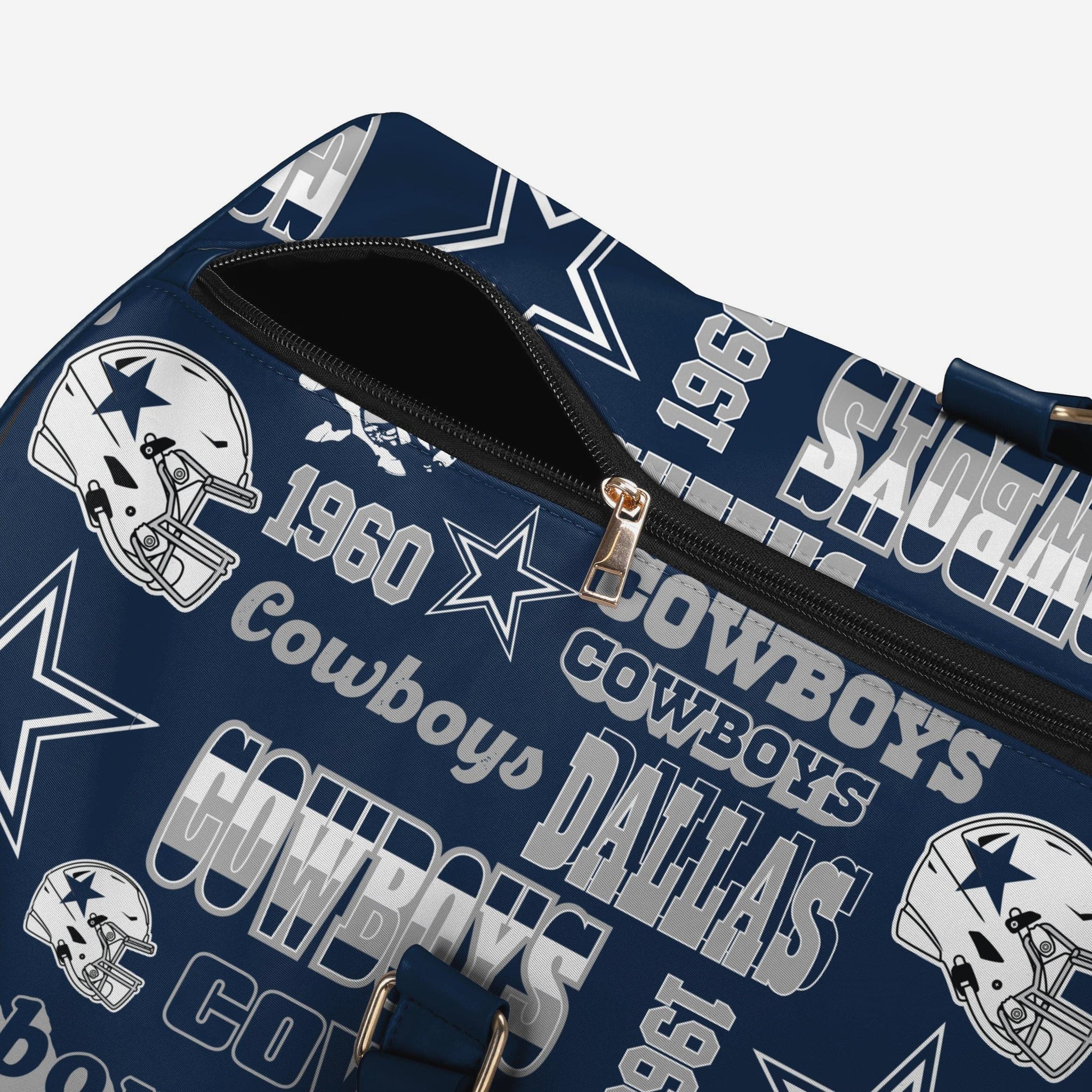- Repeat retro Dallas Cowboys wordmarks, logos, and graphics printed all over the bag so your team pride is always on display