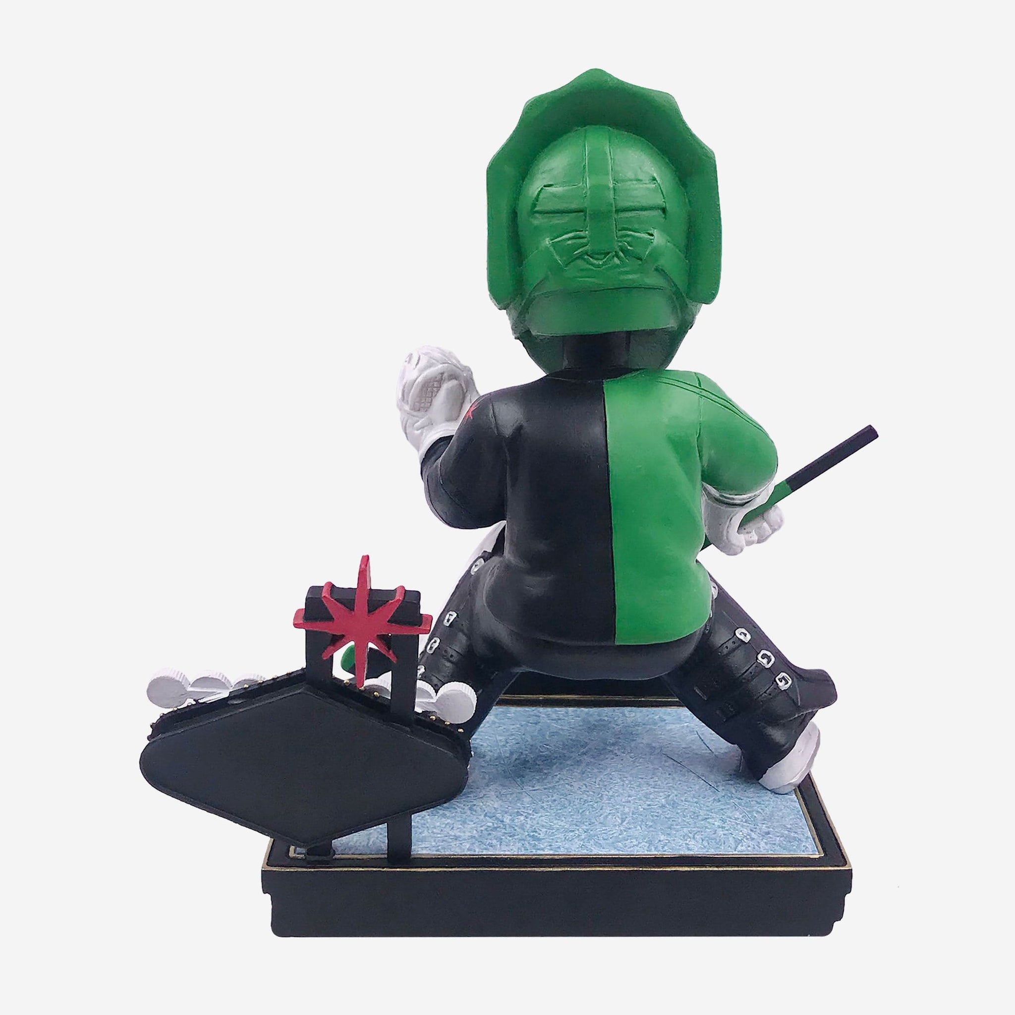 - Portrays figure wearing team-colored uniform and goalie gear, ready to make the save for your collection