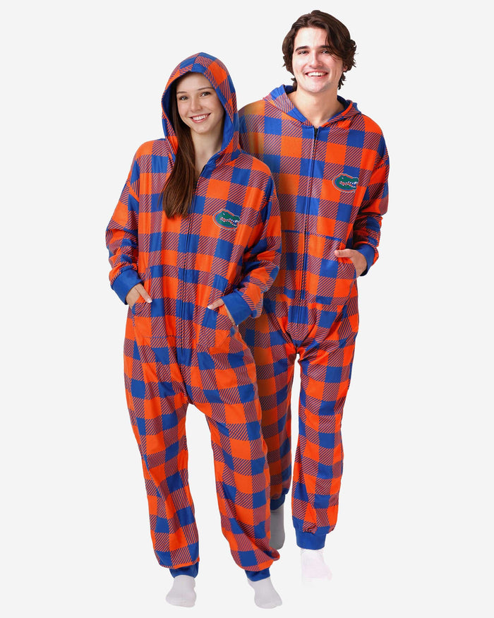 Get some matching family pajamas and dress to impress this holiday season! You won't want to miss these onesie team pajamas! These men's and women's PJ's are comfortable and show off your team spirit in the form of some sweet one piece jammies. Introducing the Florida Gators Plaid One Piece Pajamas! Don't forget to take your holiday photo with the whole family wearing matching Christmas pajamas!
