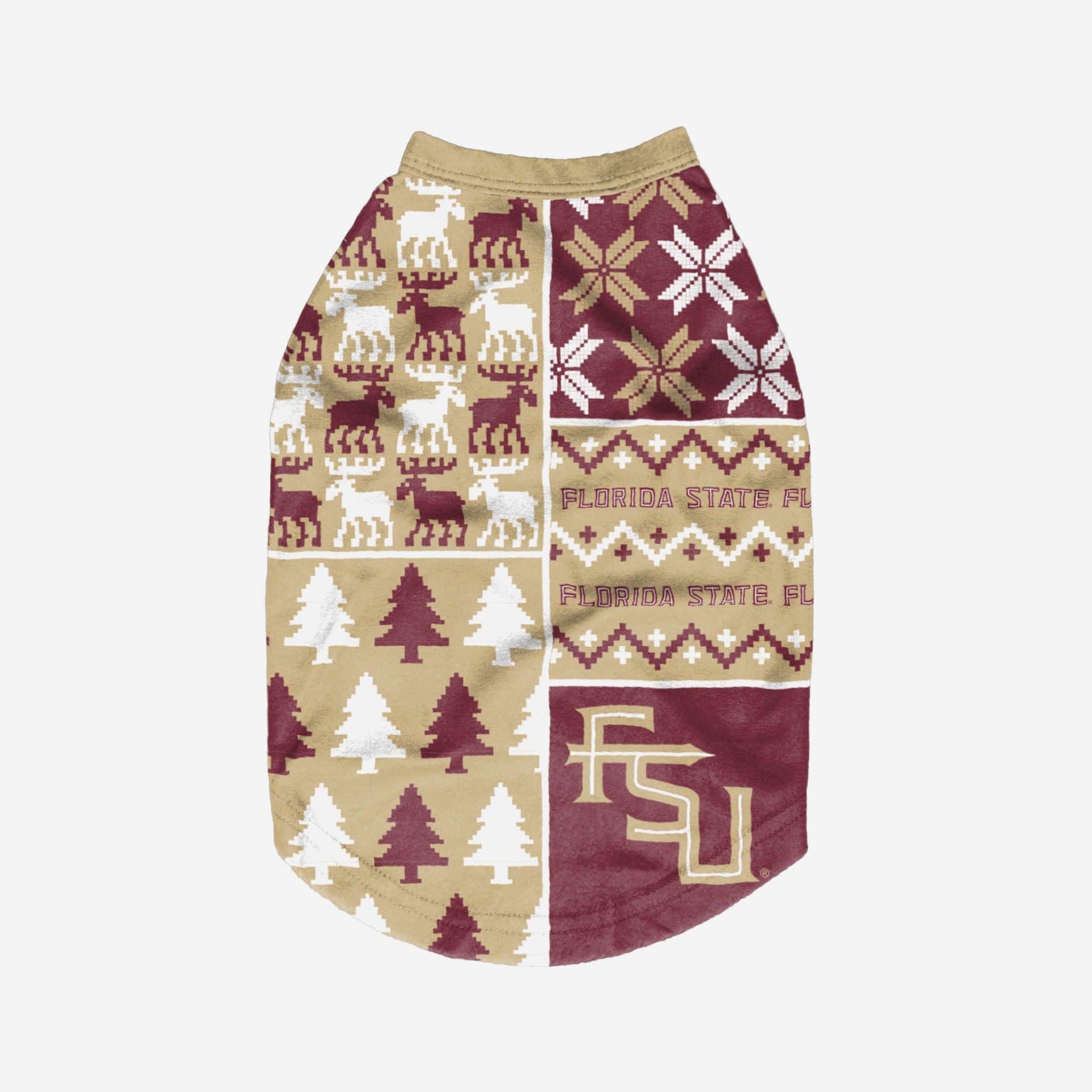Show off your pet's holiday spirit with this dog sweater! Your good boy (or girl) will love this Florida State Seminoles Busy Block Dog Sweater so much, they'll be saying "woof bark awooo" (that's "thank you" in pup language). Don't forget to match your canine's sweater with a set of matching holiday pajamas!