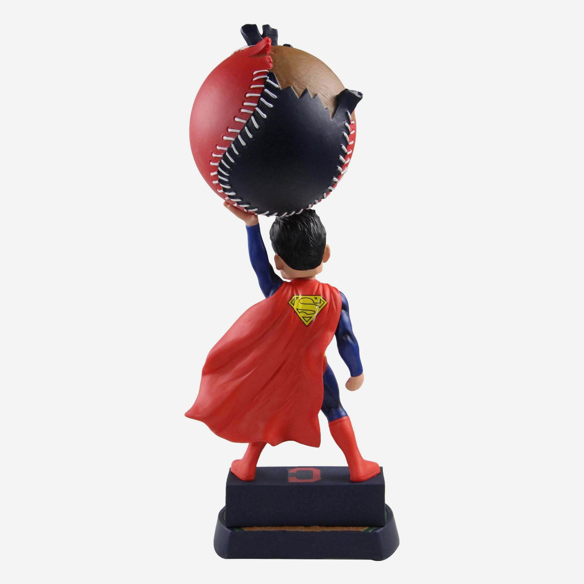 • Portrays Superman posing and holding a team-colored baseball with team logo display, showing off that super strength