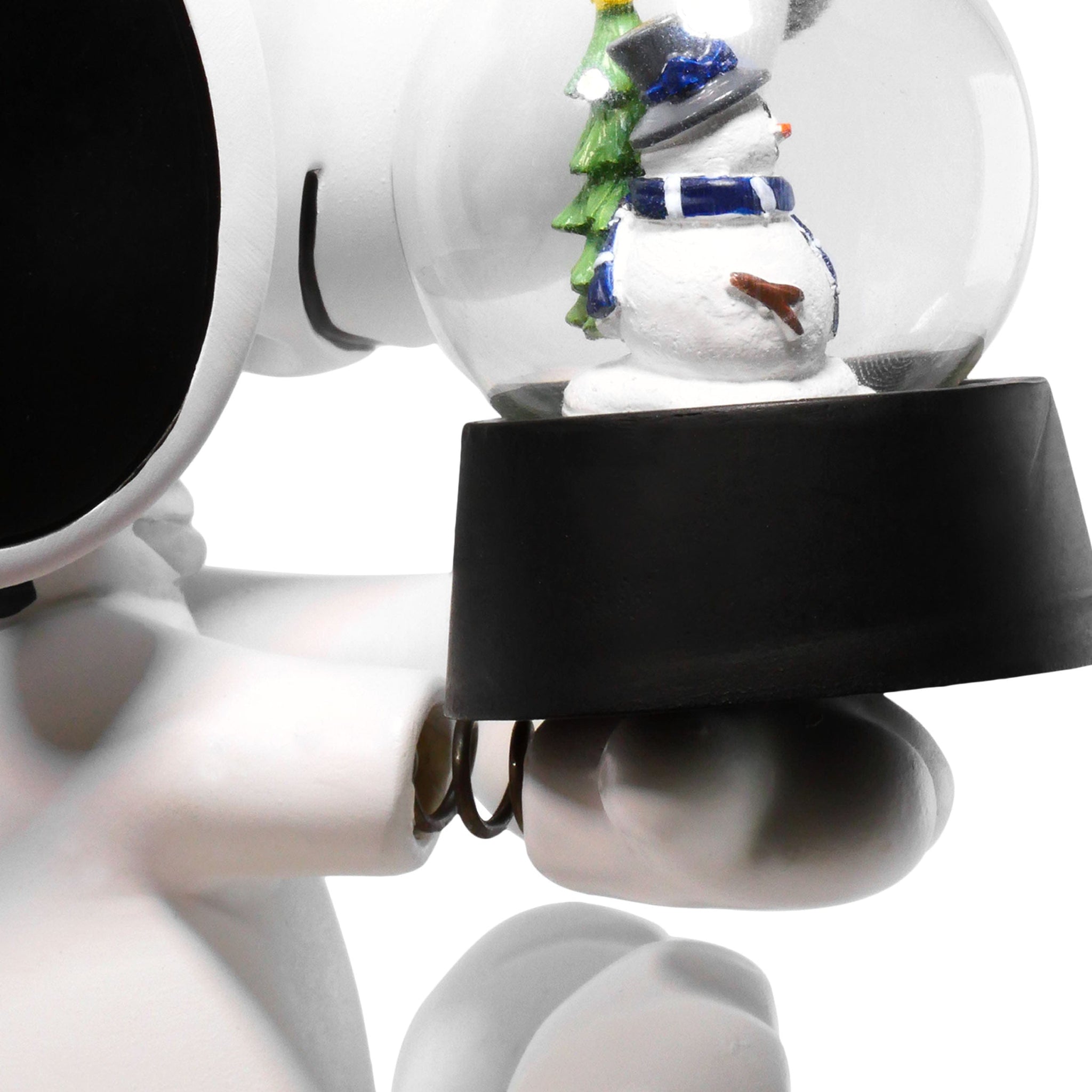 - Portrays Snoopy holding a snowglobe, bundled up in cozy winter gear for a festive seasonal look