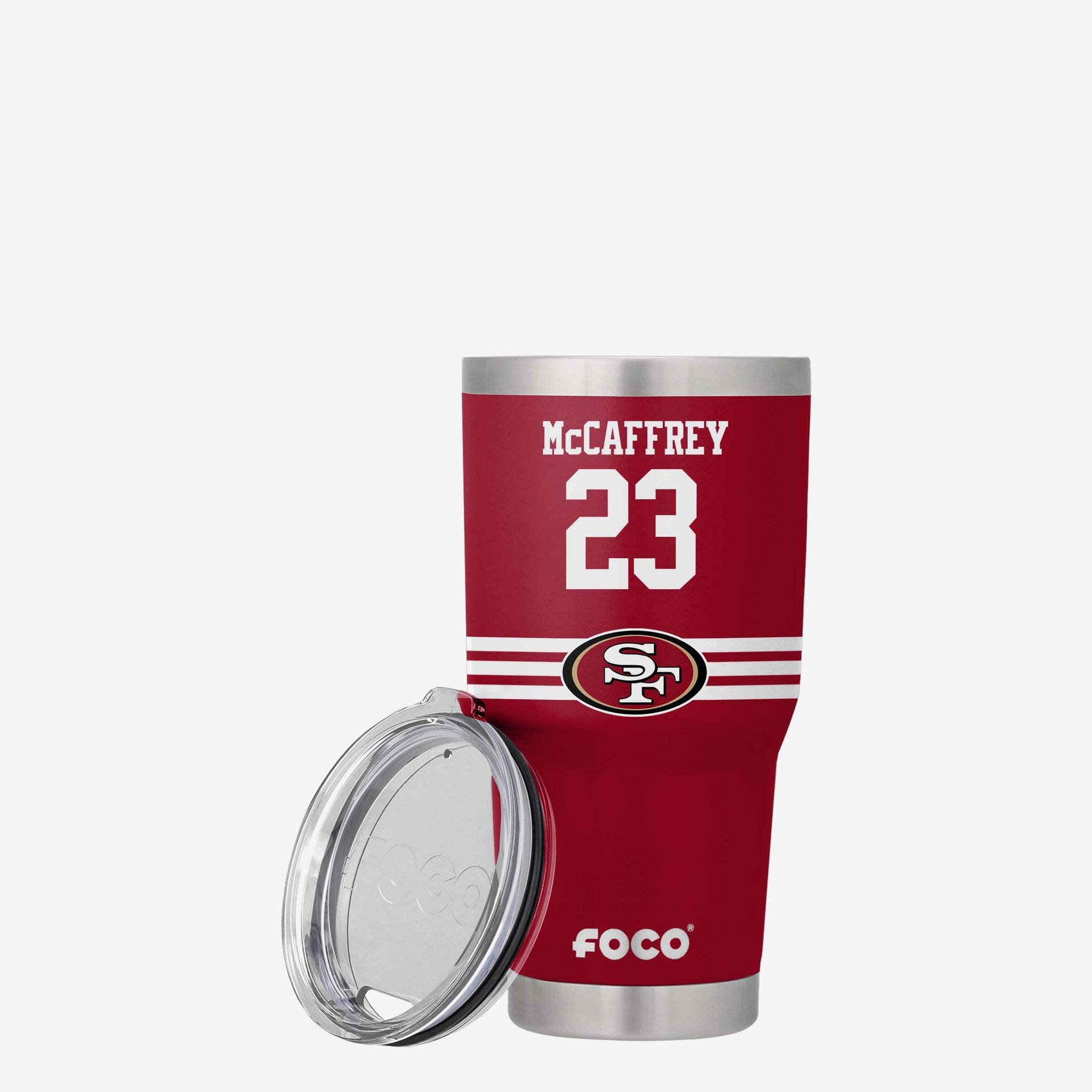 Sip with the support of your favorite star! Whether it’s keeping your coffee warm on a cold, winter day or keeping your water nice and cool in the dog days of summer, this Christian McCaffrey San Francisco 49ers Team Logo 30 oz. Player Tumbler is here to keep your drink just how you like it.