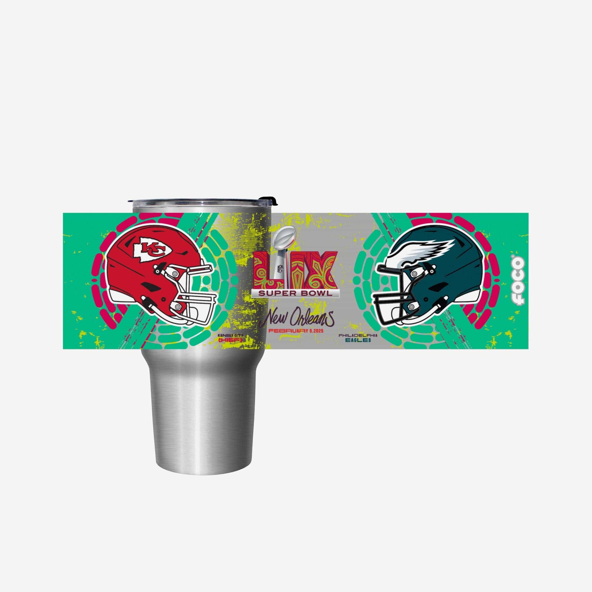 Kansas City Chiefs vs Philadelphia Eagles Super Bowl LIX Silver 27 oz Stainless Steel Tumbler FOCO - FOCO.com
