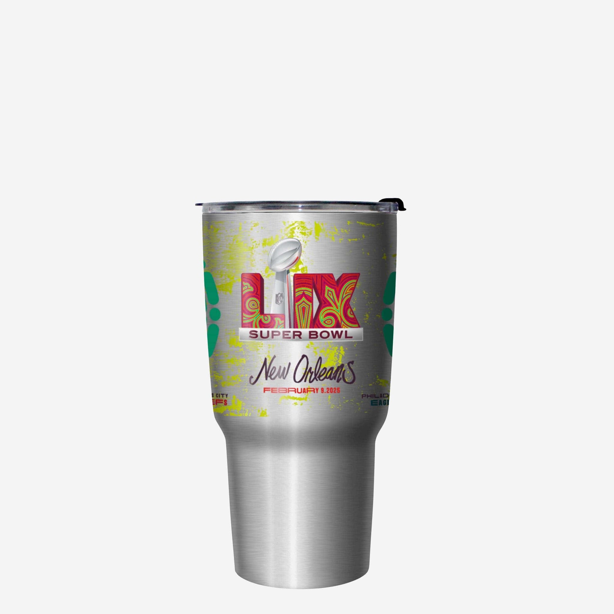 Whether you’re rooting for the Chiefs or the Eagles, you need a way to stay hydrated. Bring the excitement from New Orleans to your hands with a Kansas City Chiefs vs. Philadelphia Eagles Super Bowl LIX Silver 27 oz. Stainless Steel Tumbler.