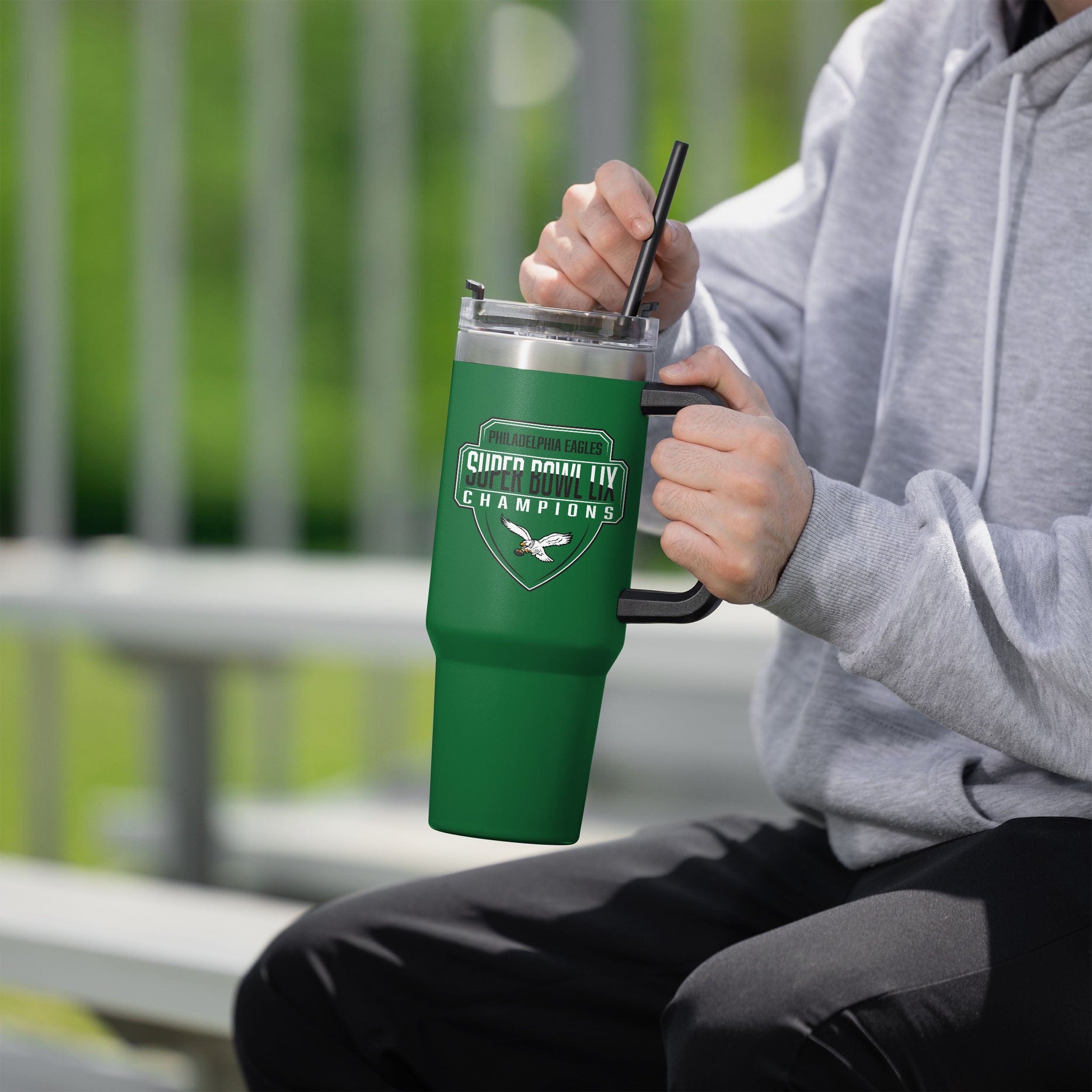 Don't forget to balance out that celebration with some hydration. This Philadelphia Eagles Super Bowl LIX Champions Kelly Green 40 oz Team Color XL Tumbler can help!