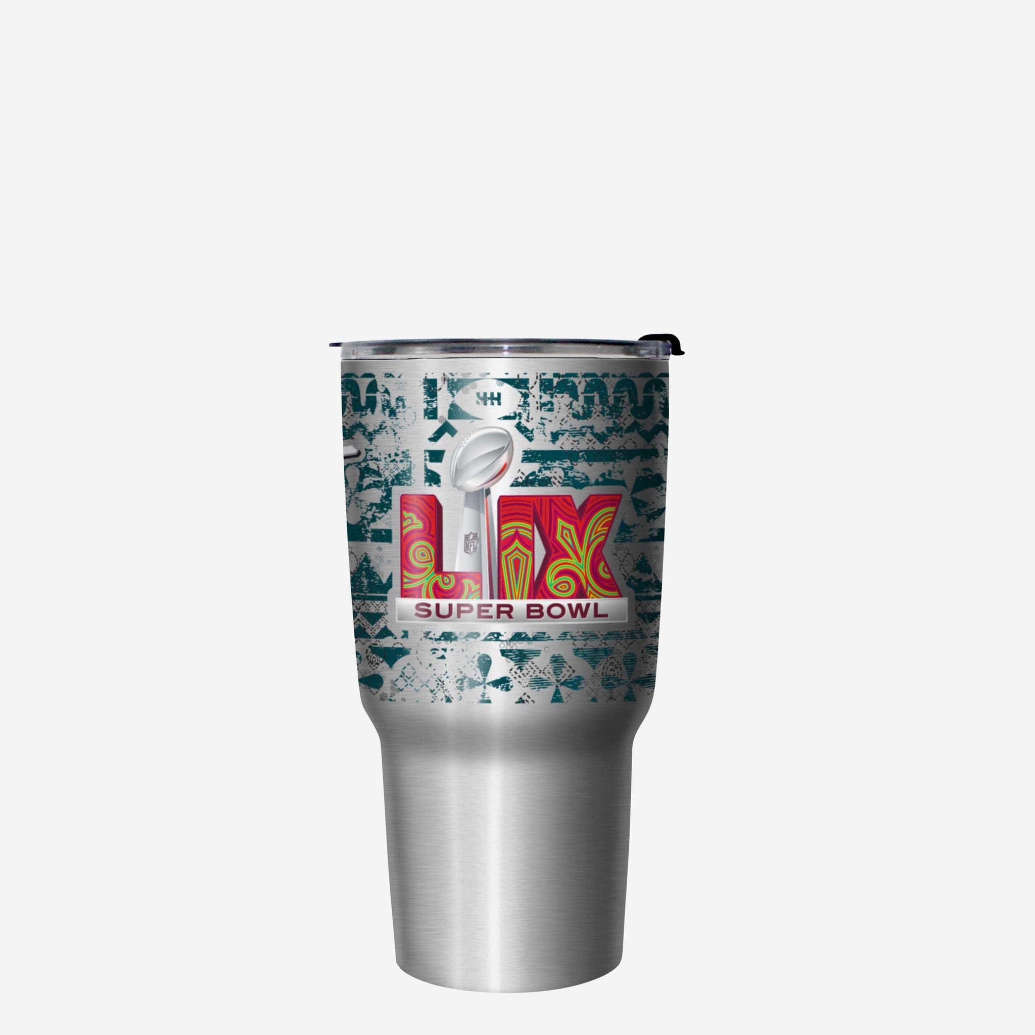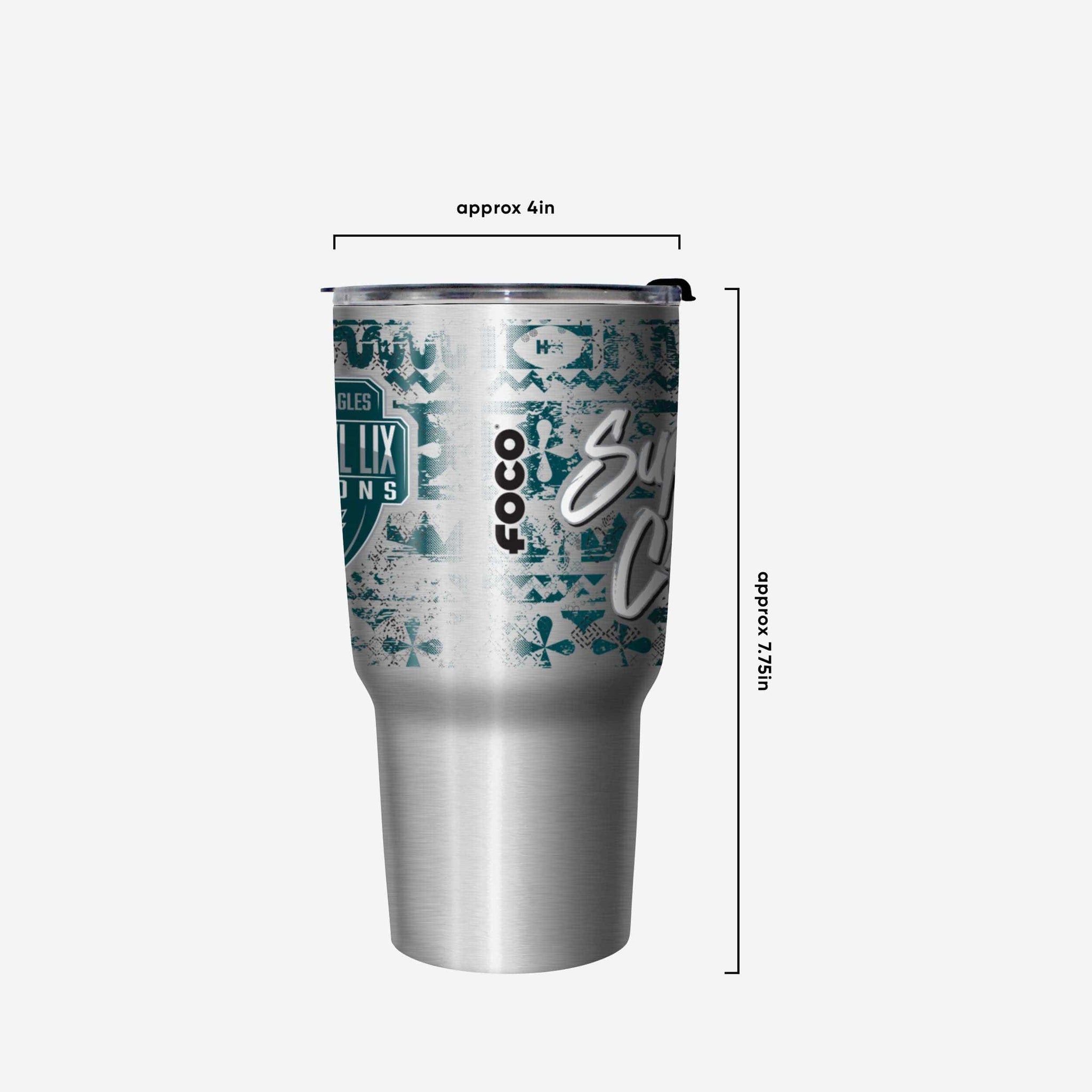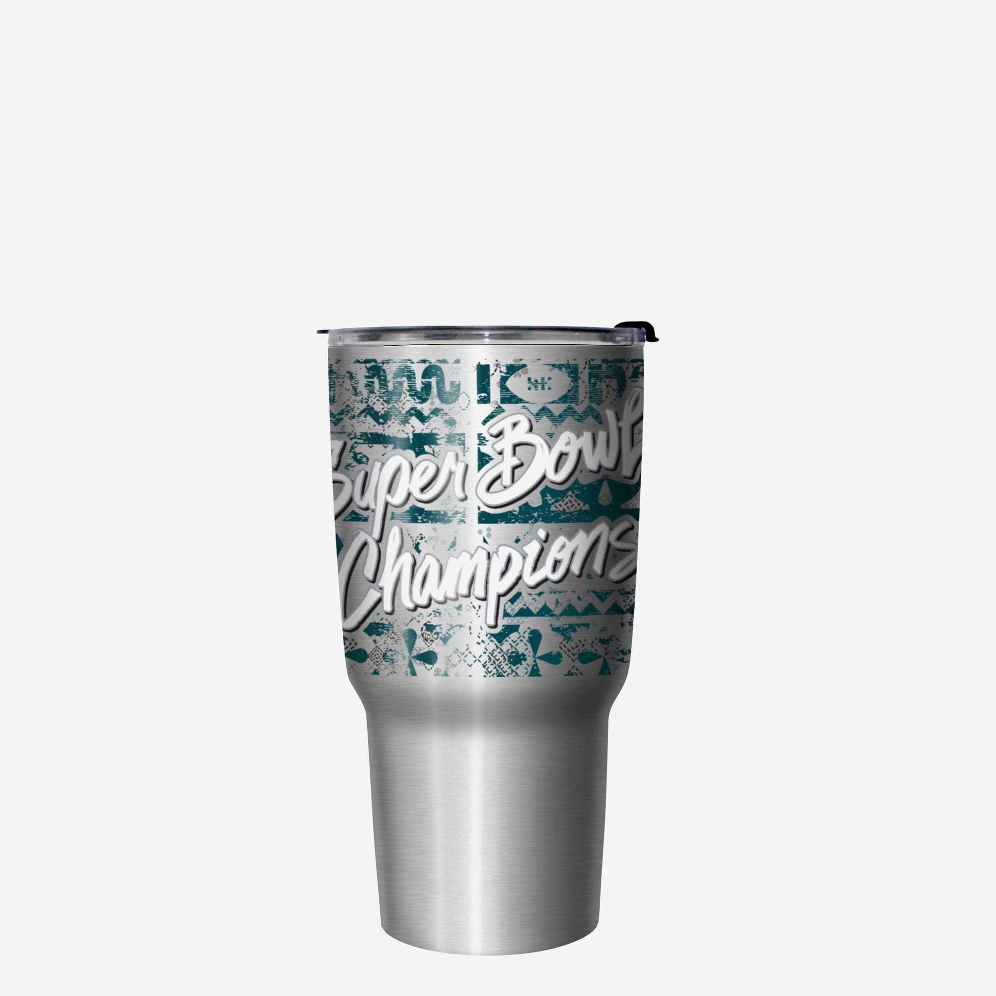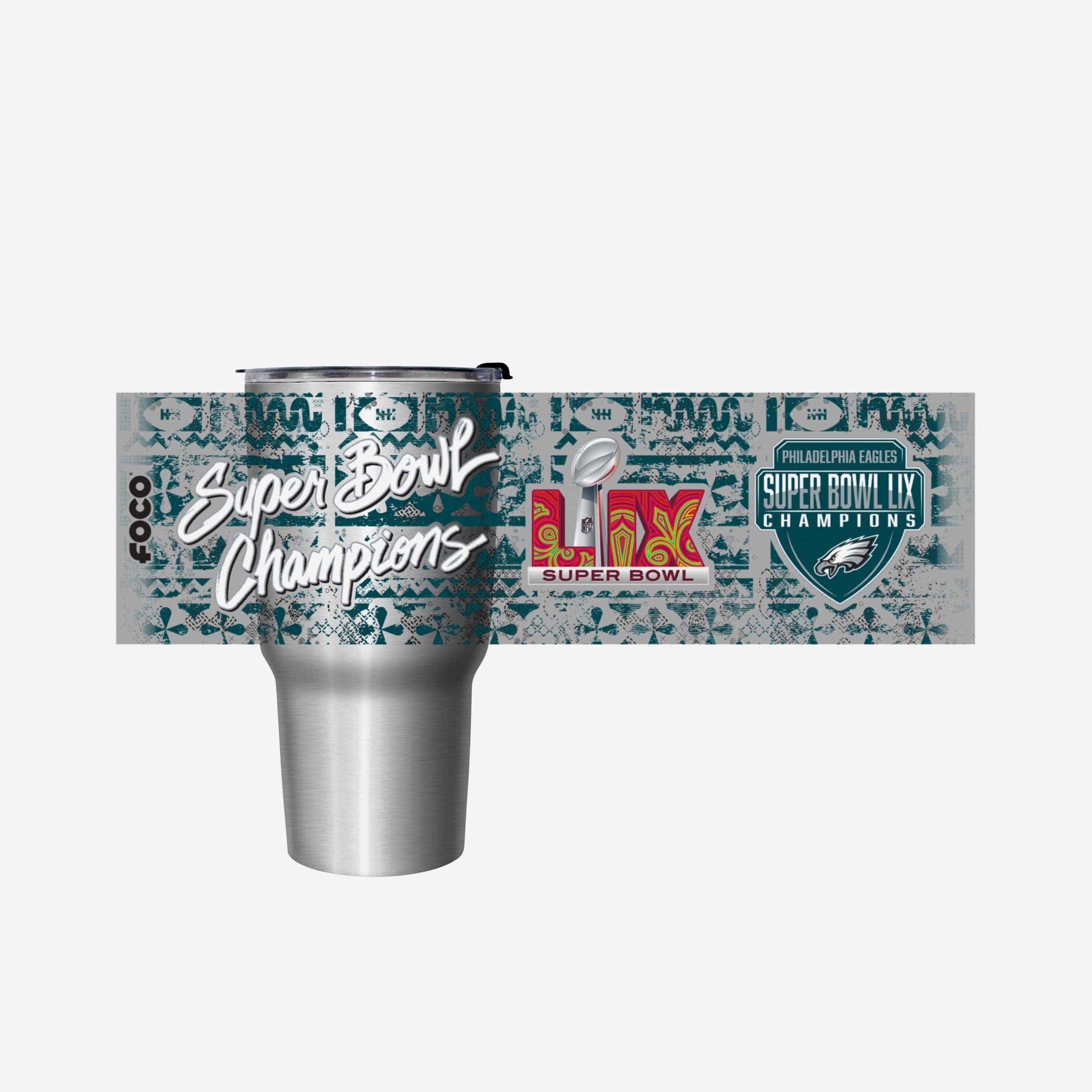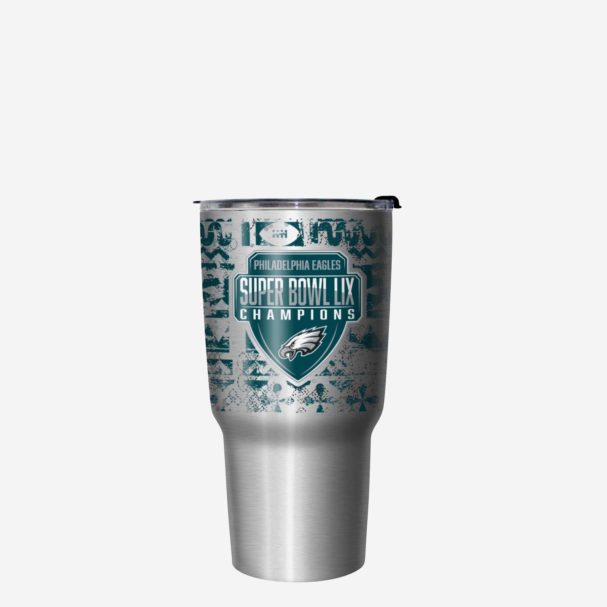 Don't forget to balance out that celebration with some hydration. This Philadelphia Eagles Super Bowl LIX Champions Stencil Silver 27 oz Stainless Steel Tumbler can help!
