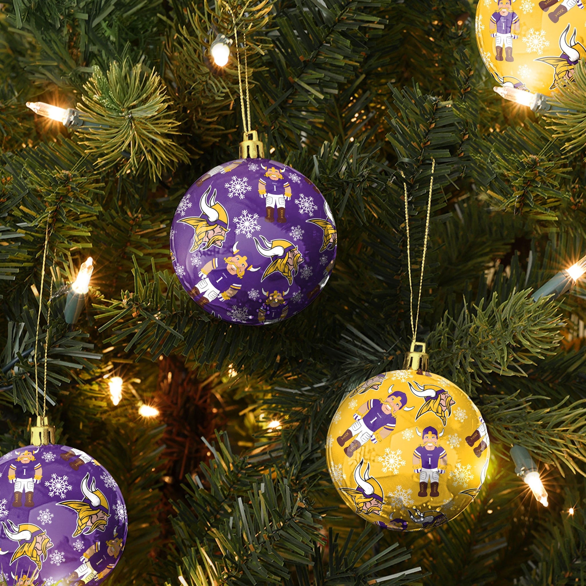 Minnesota Vikings 4 Pack Ball Mascot Ornament Set FOCO - FOCO.com
