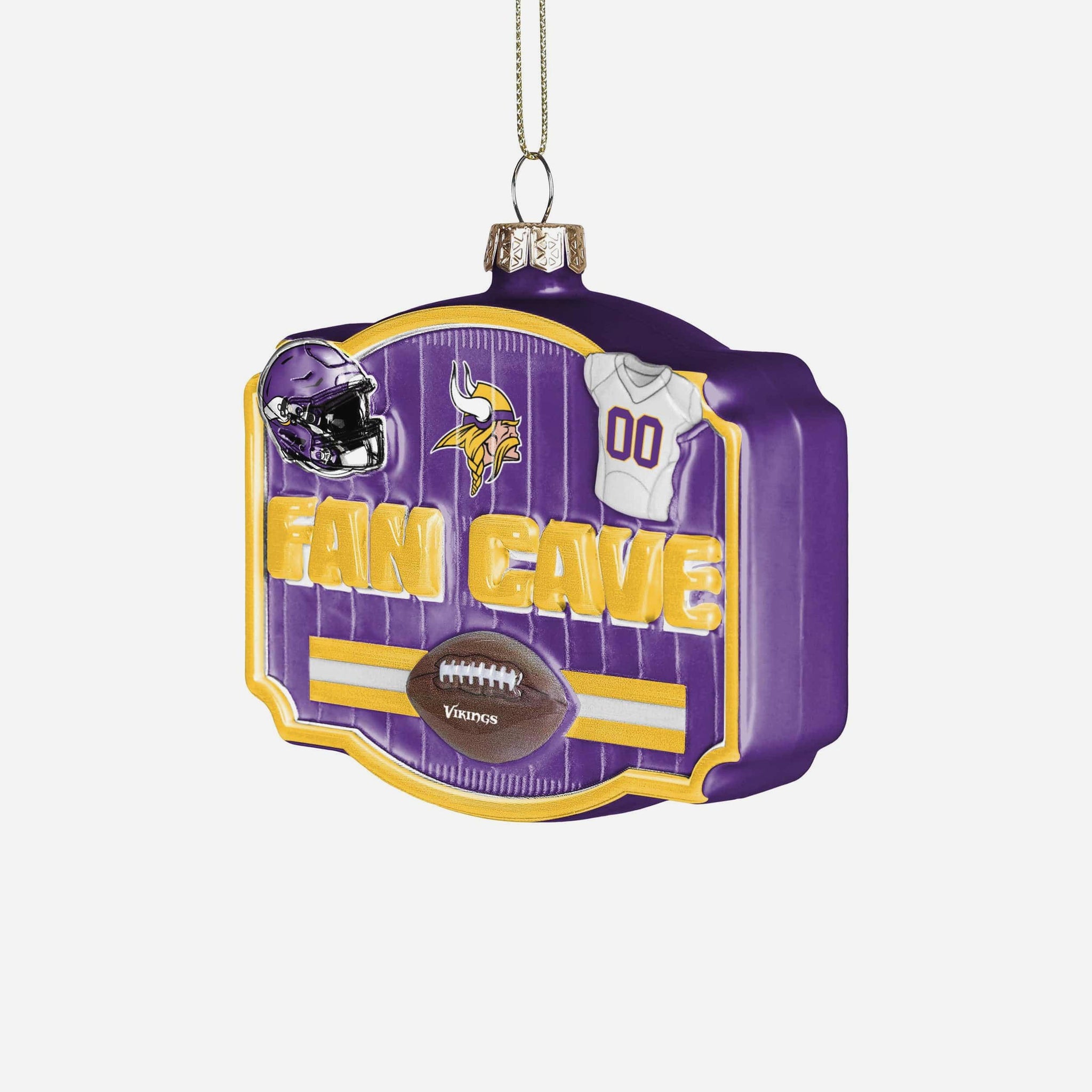 Celebrate the most wonderful time of the year with the ultimate fan flair! From kickoff to Christmas morning, this Minnesota Vikings Blown Glass Fan Cave Ornament scores big with team logos, helmets, and jersey details in a premium blown glass finish.