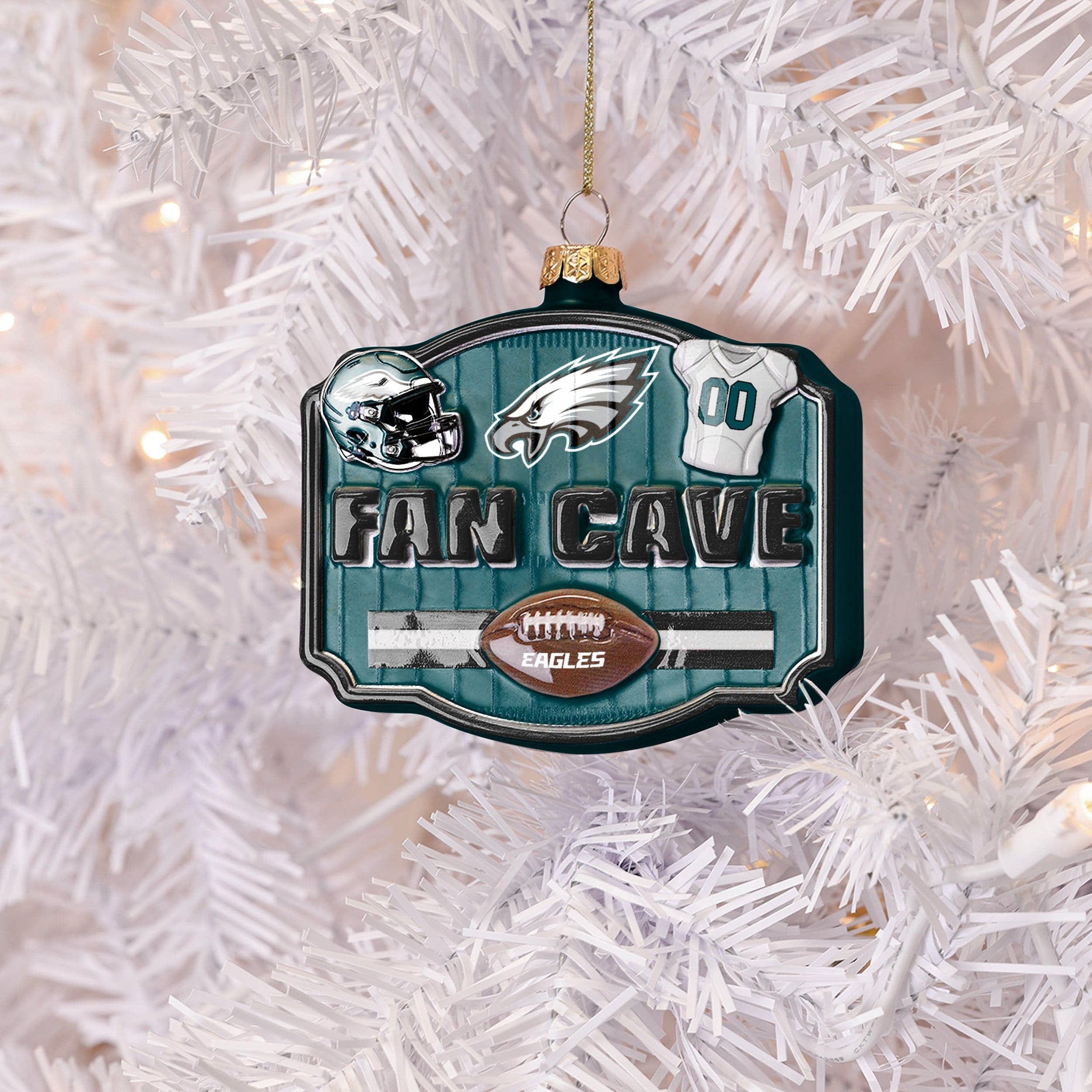 Celebrate the most wonderful time of the year with the ultimate fan flair! From kickoff to Christmas morning, this Philadelphia Eagles Blown Glass Fan Cave Ornament scores big with team logos, helmets, and jersey details in a premium blown glass finish.