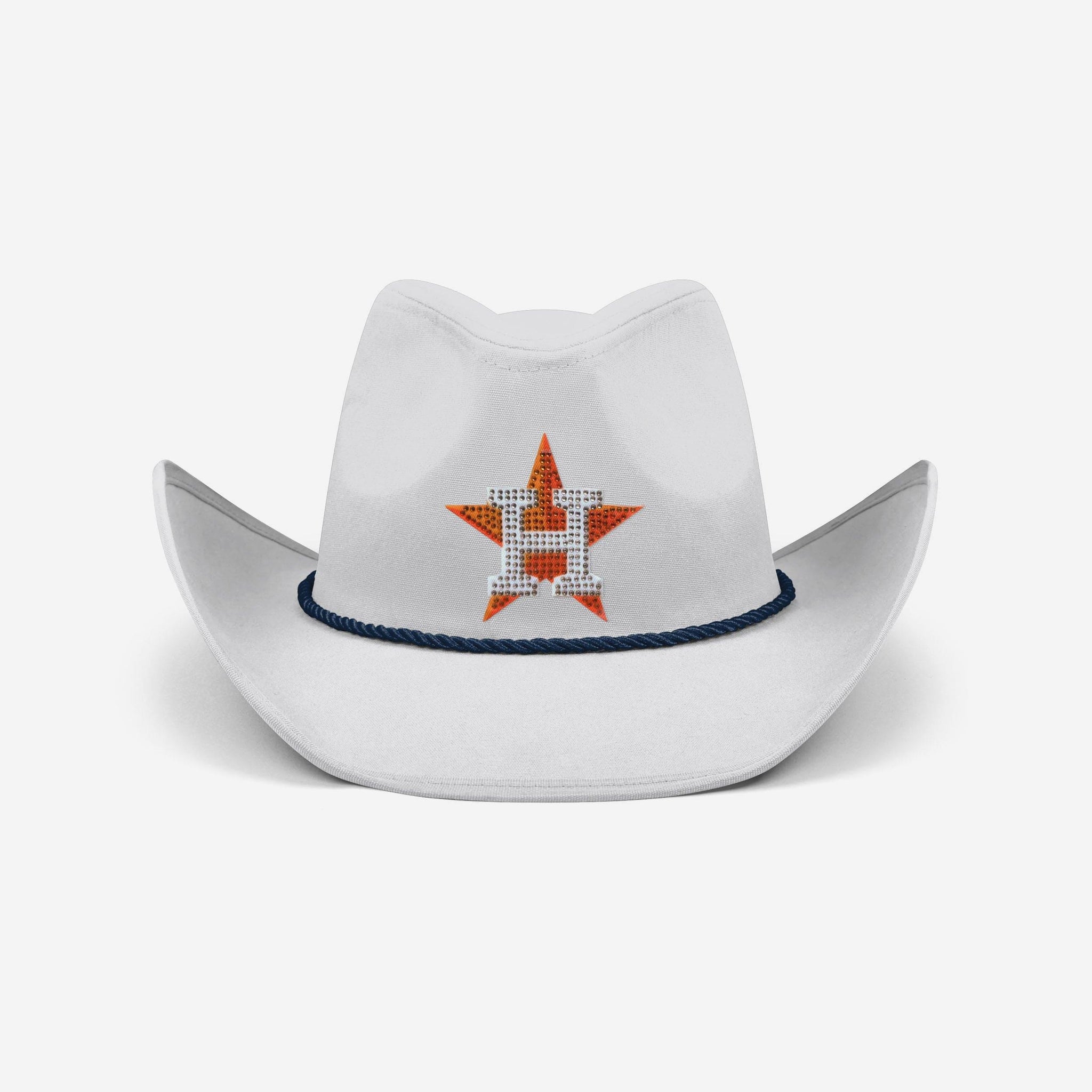 Howdy partner! Top off your fan fit and sparkle with standout style in this Houston Astros White Rhinestone Cowboy Hat.