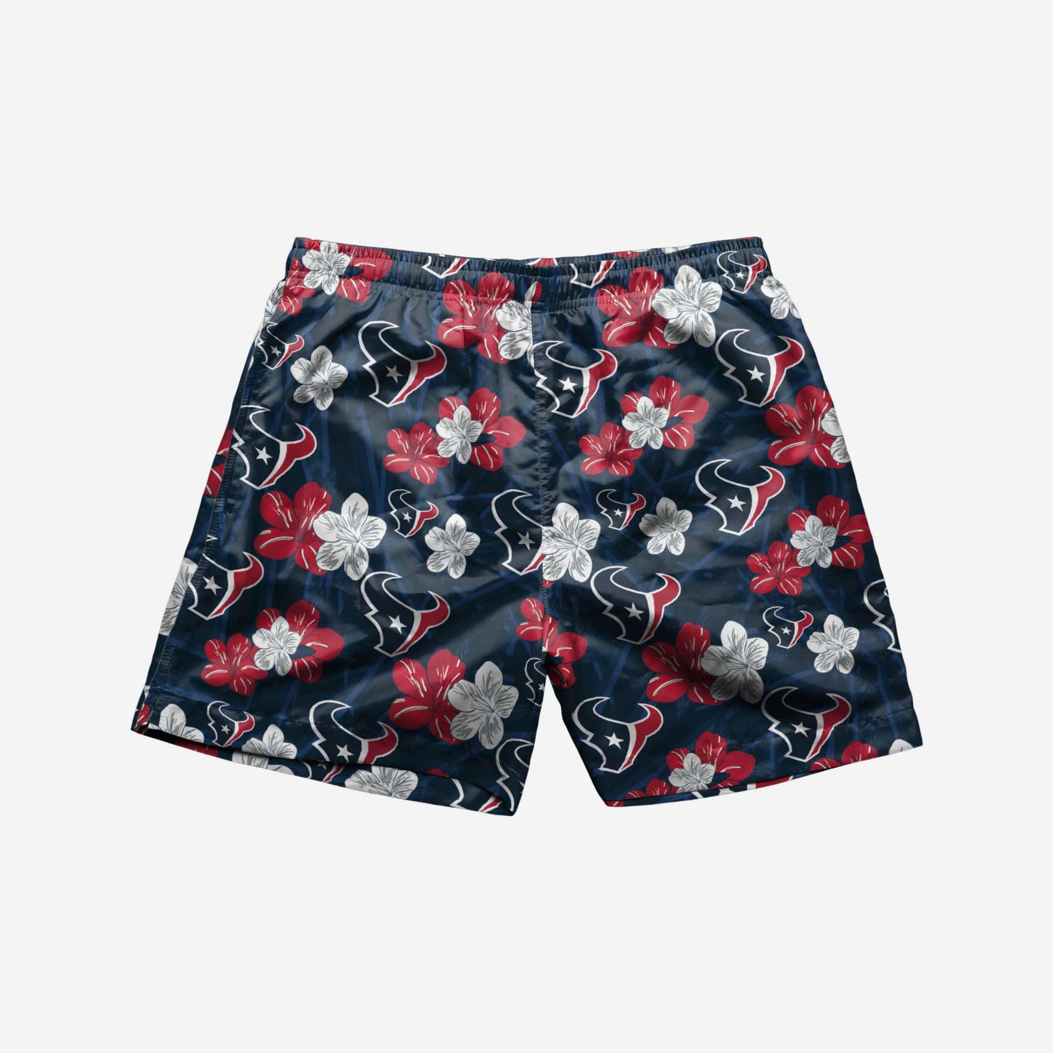 Rock your fandom and say "aloha" to the pool, ocean, lake, hot tub, or whatever body of water you're getting into while you wear these Houston Texans Hibiscus Swimming Trunks.
