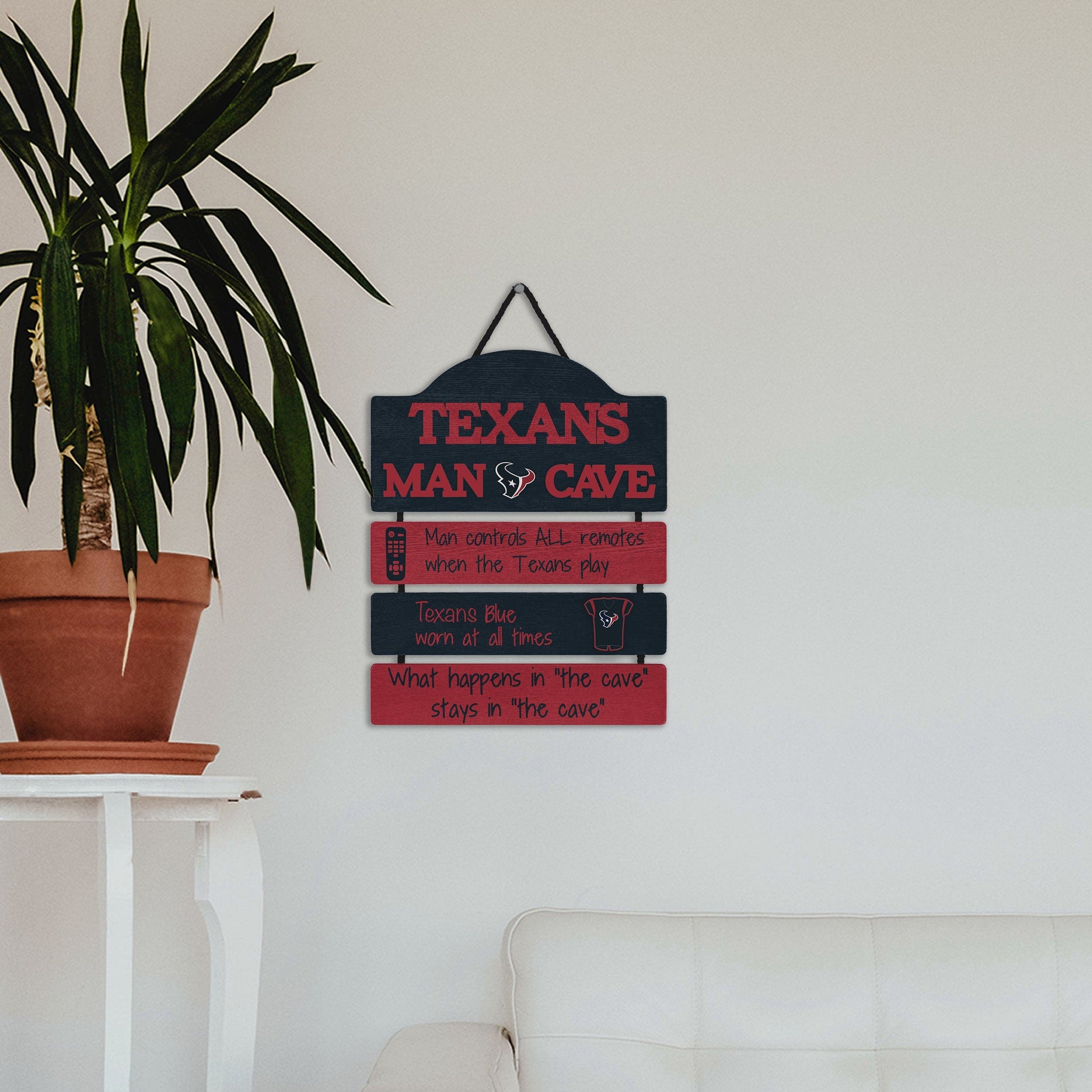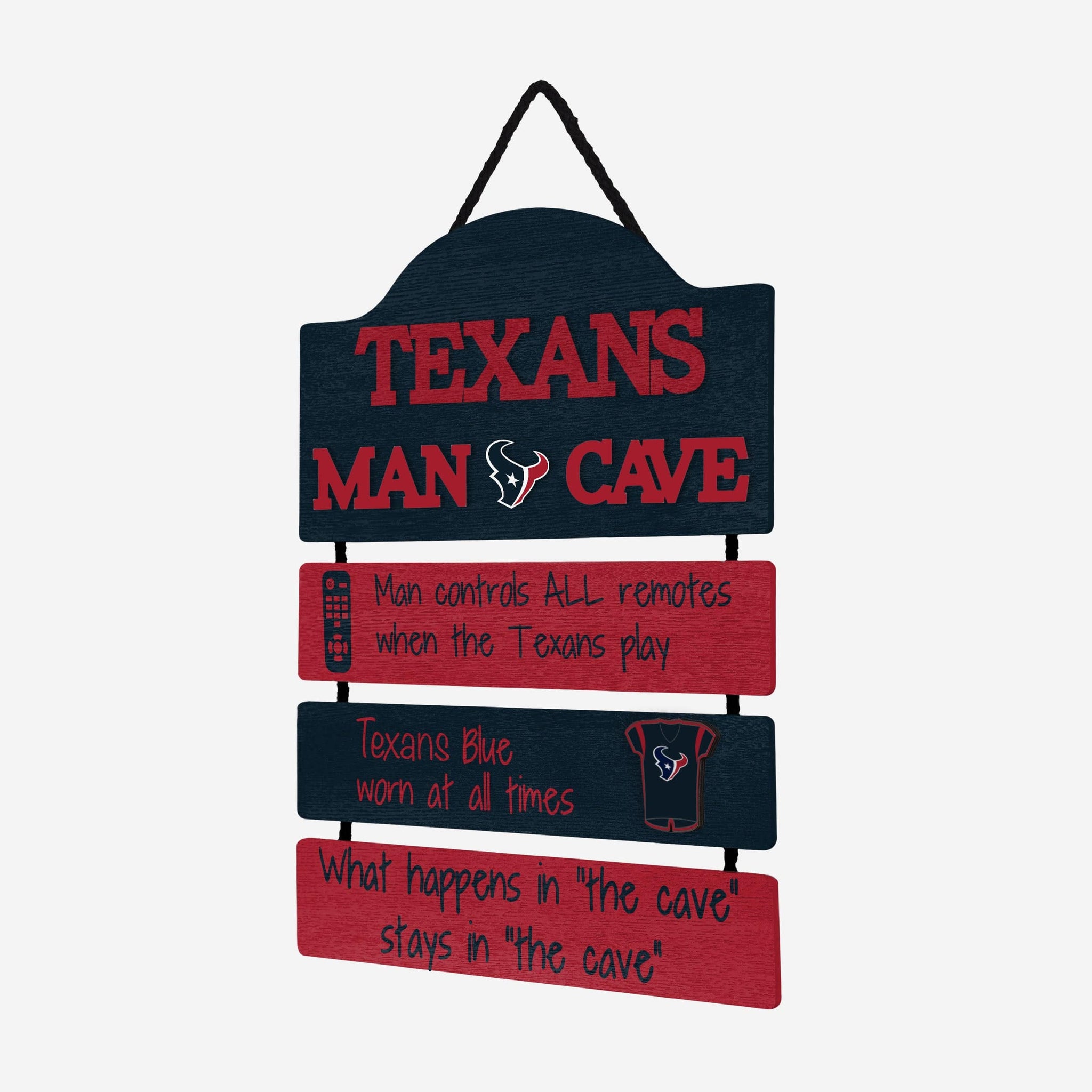 So, you're hosting the big watch party, and want to make sure you've decorated enough to impress your fellow fans. We've got you covered. This Houston Texans Mancave Sign lets everyone know who the fan in charge is, and gives your home field plenty of advantage.