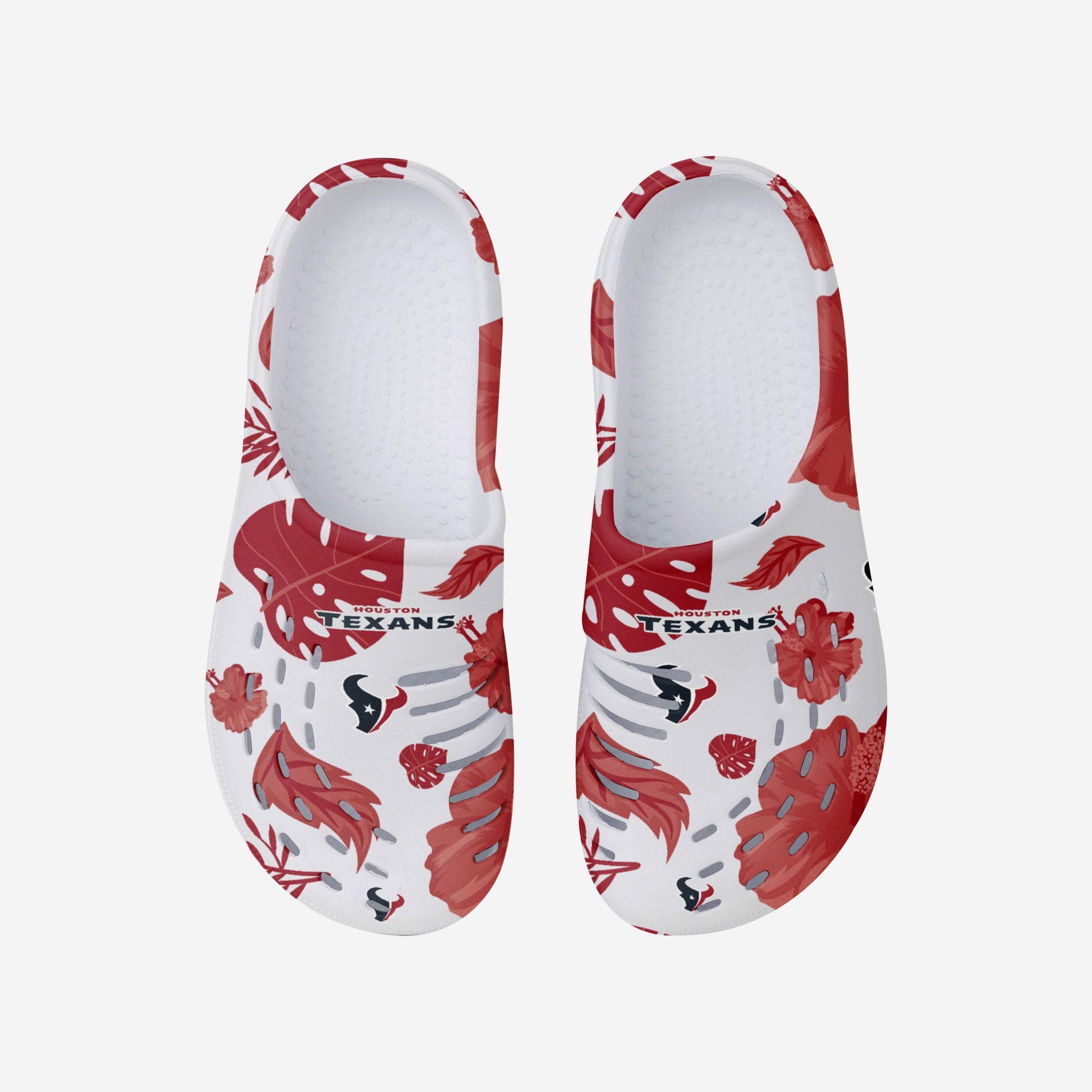 When you're packing for your next beach trip, make sure your team spirit isn't left at home. These Houston Texans Women's Floral White Clogs have you covered!