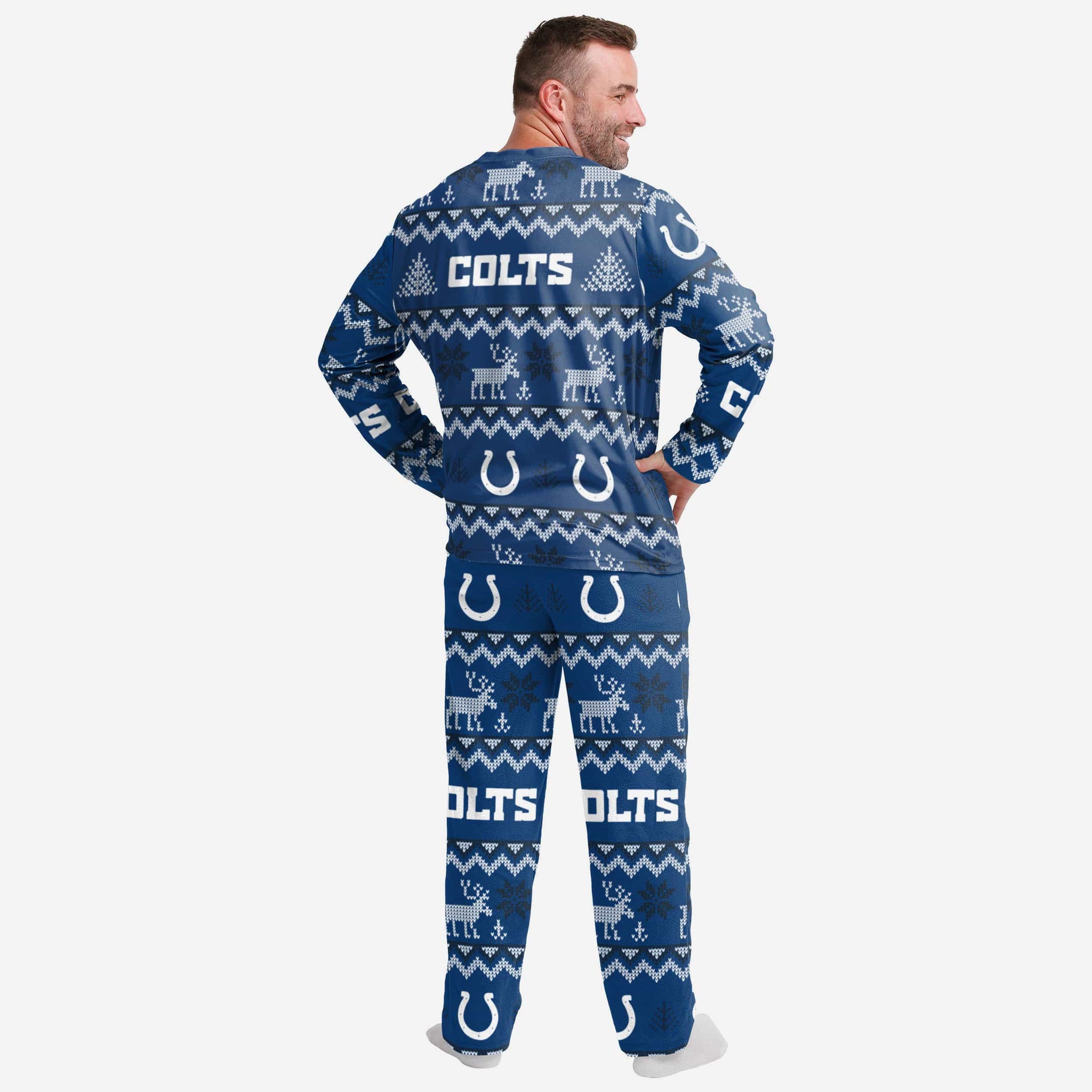 Get some matching family pajamas and dress to impress this holiday season! You won't want to miss these men's team pajamas! These men's PJ's are comfortable and show off your team spirit in the form of some sweet men's jammies. Introducing the Indianapolis Colts Ugly Pattern Family Holiday Pajamas! Don't forget to take your holiday photo with the whole family wearing matching Christmas pajamas!