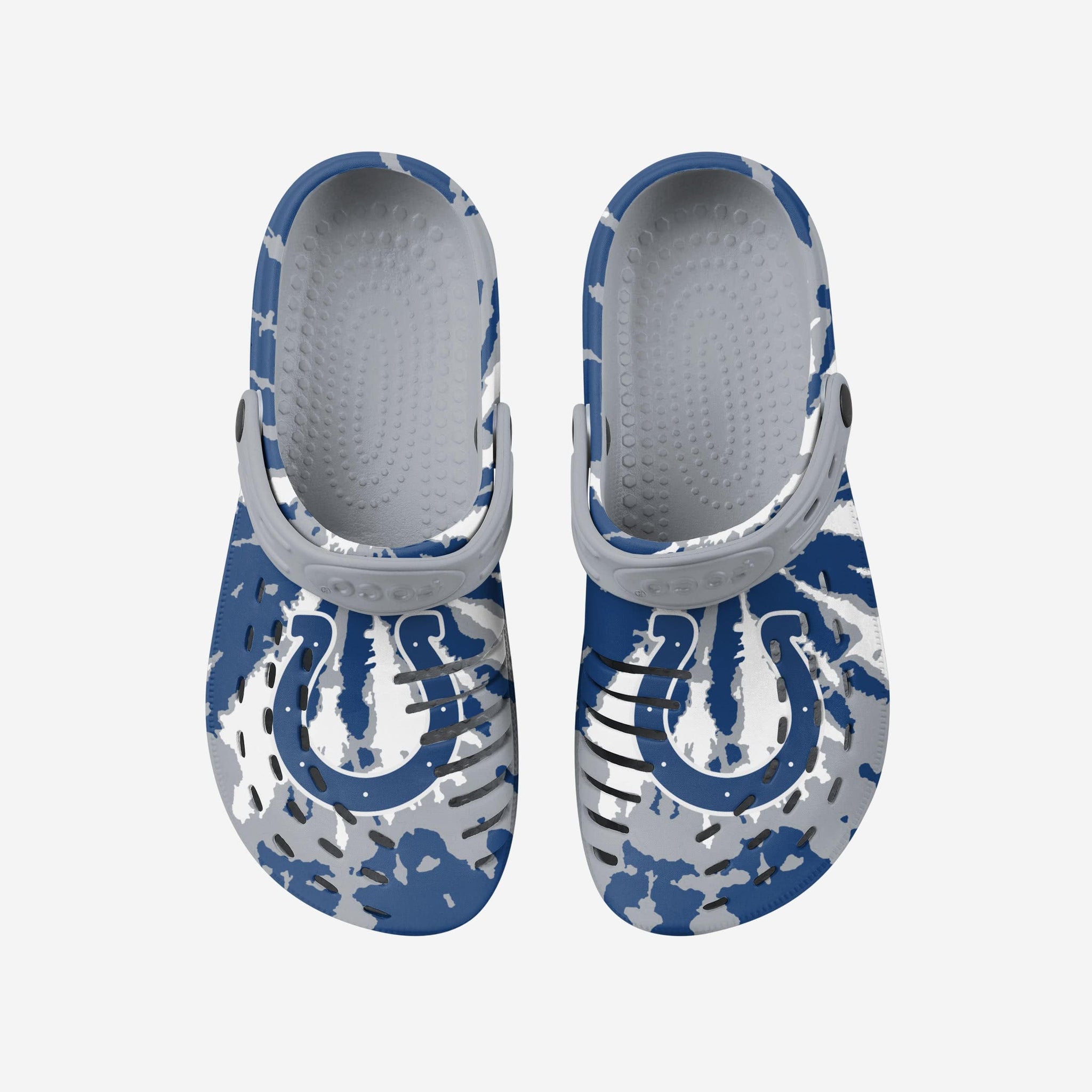 Enjoy a heaping helping of groovy goodness by standing out in these Indianapolis Colts Tie-Dye Clogs with Straps.