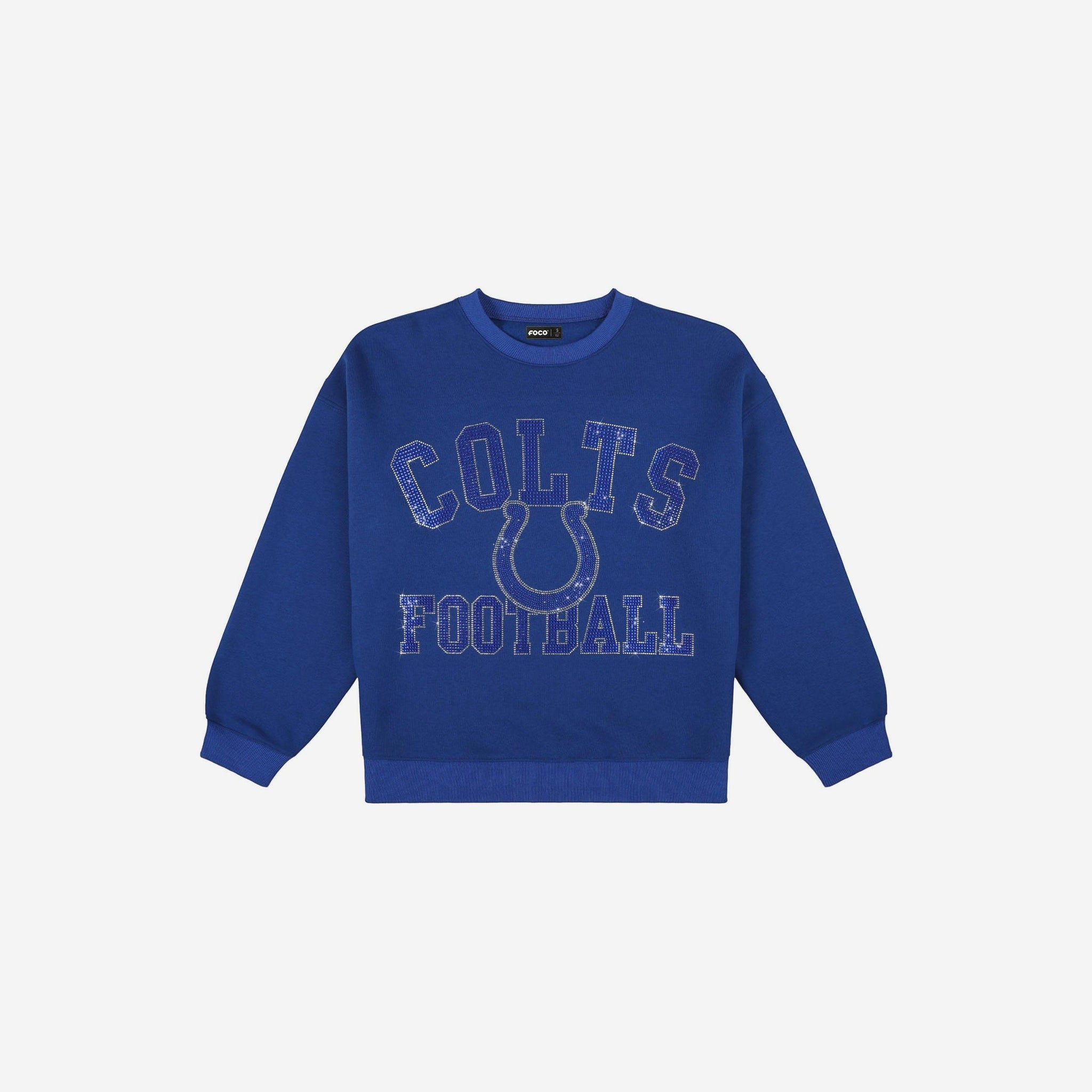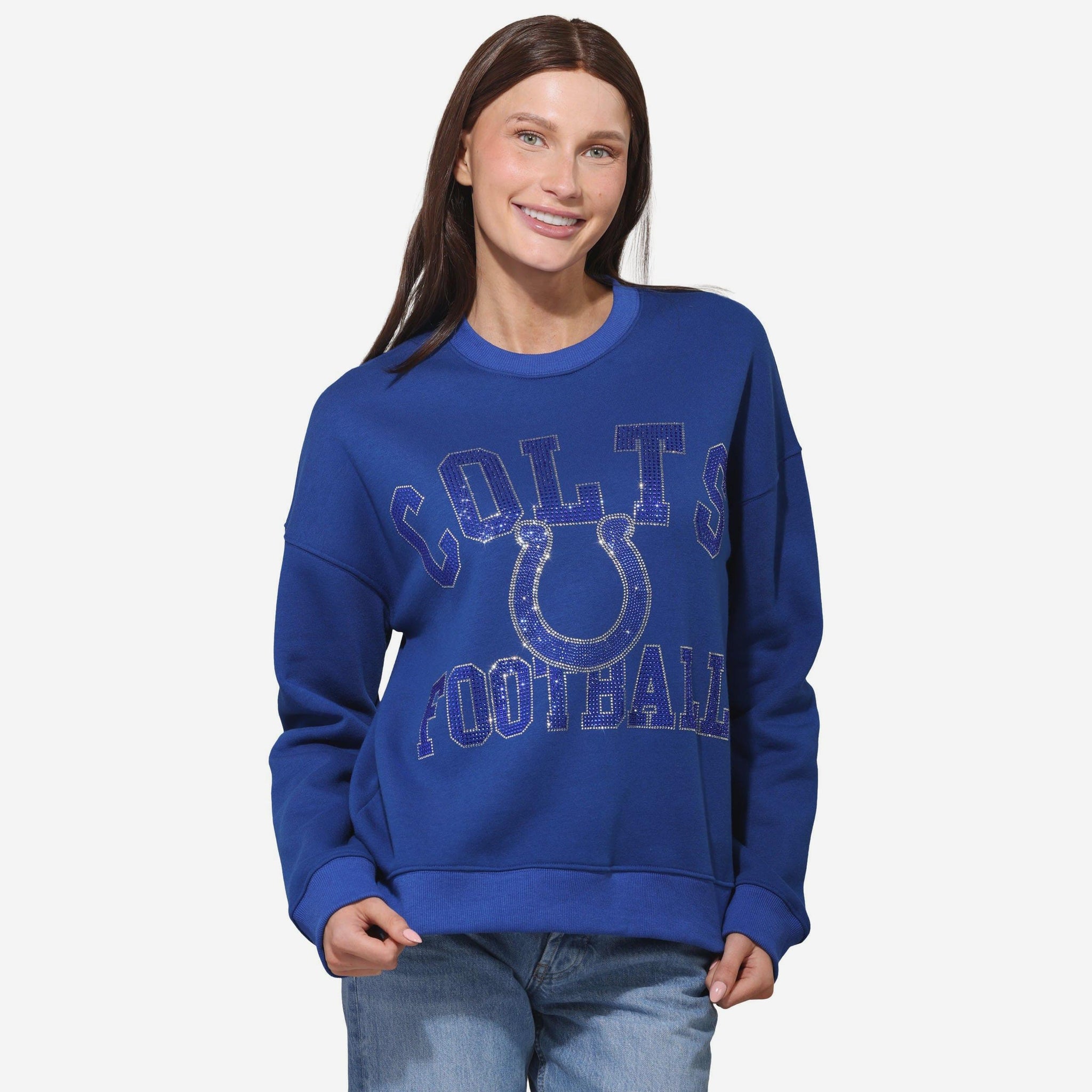 Bling it on! It's time to turn up the twinkle and let your fan fit do the talking. This Indianapolis Colts Womens Rhinestone Logo Oversized Crew Neck Sweatshirt is made for those who like their cozy with a little extra shine. From game day to every day, it’s the perfect way to stay warm and wow-worthy.