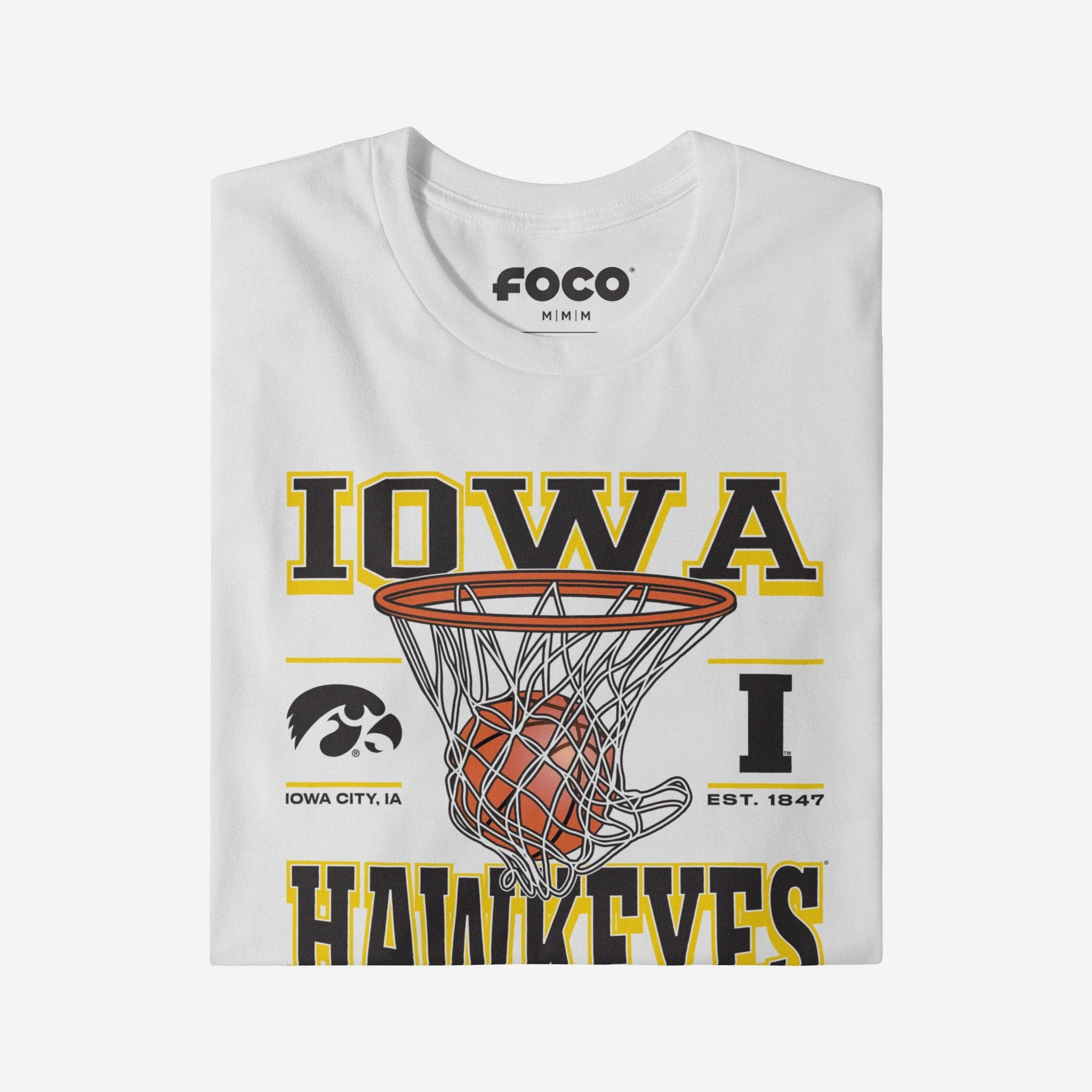 This top features a design that showcases your all-important team colors, a team logo display, a team wordmark name display, year of team establishment, and a basketball swishing through a net display meaning this t-shirt will prove your unmatched dedication to the Iowa Hawkeyes when you're at the game or watching at home. In other words, this graphic tee is about to be your new favorite teammate.