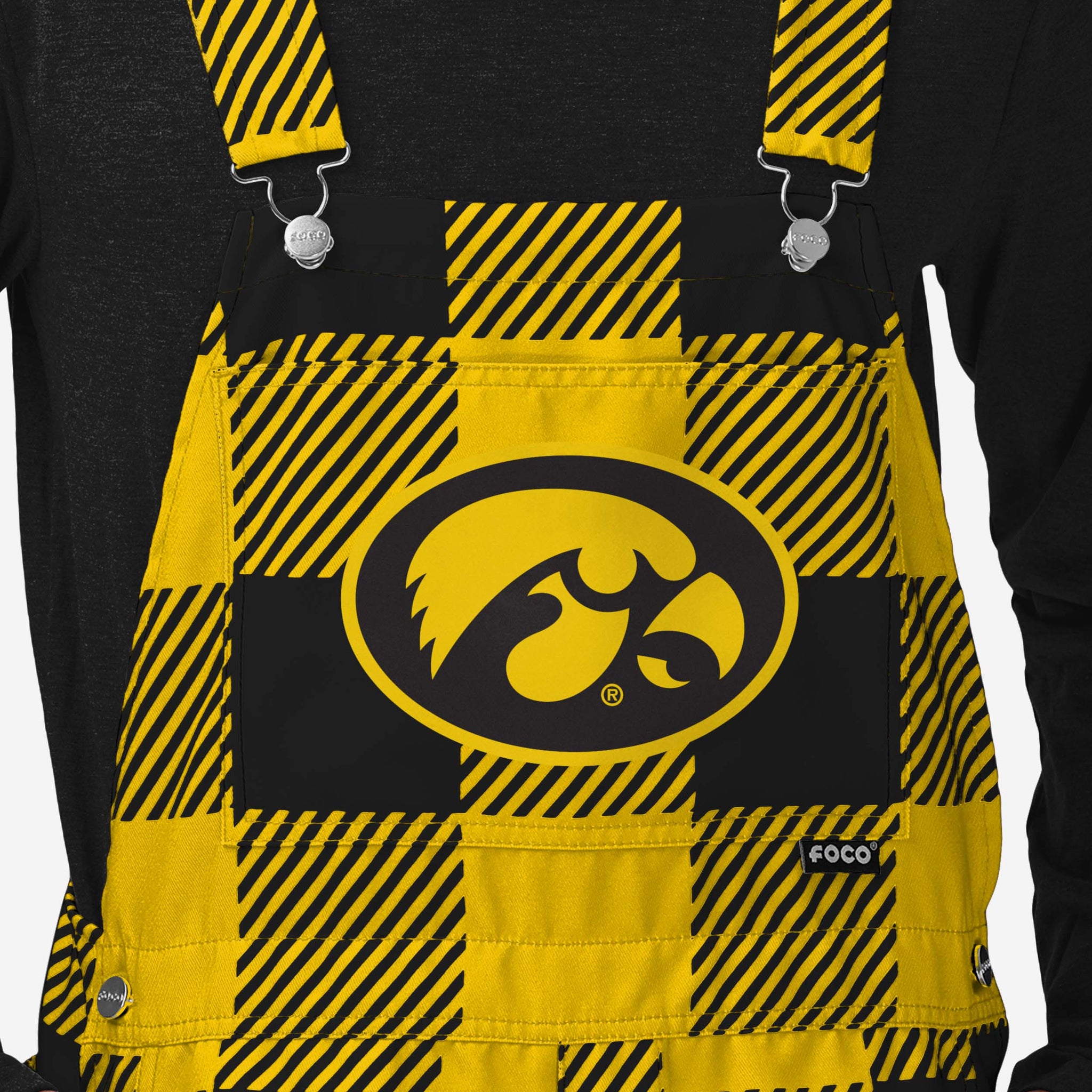 • All-over team-colored design: These shortalls are covered in the official Iowa Hawkeyes colors, so you can show your team spirit with pride.