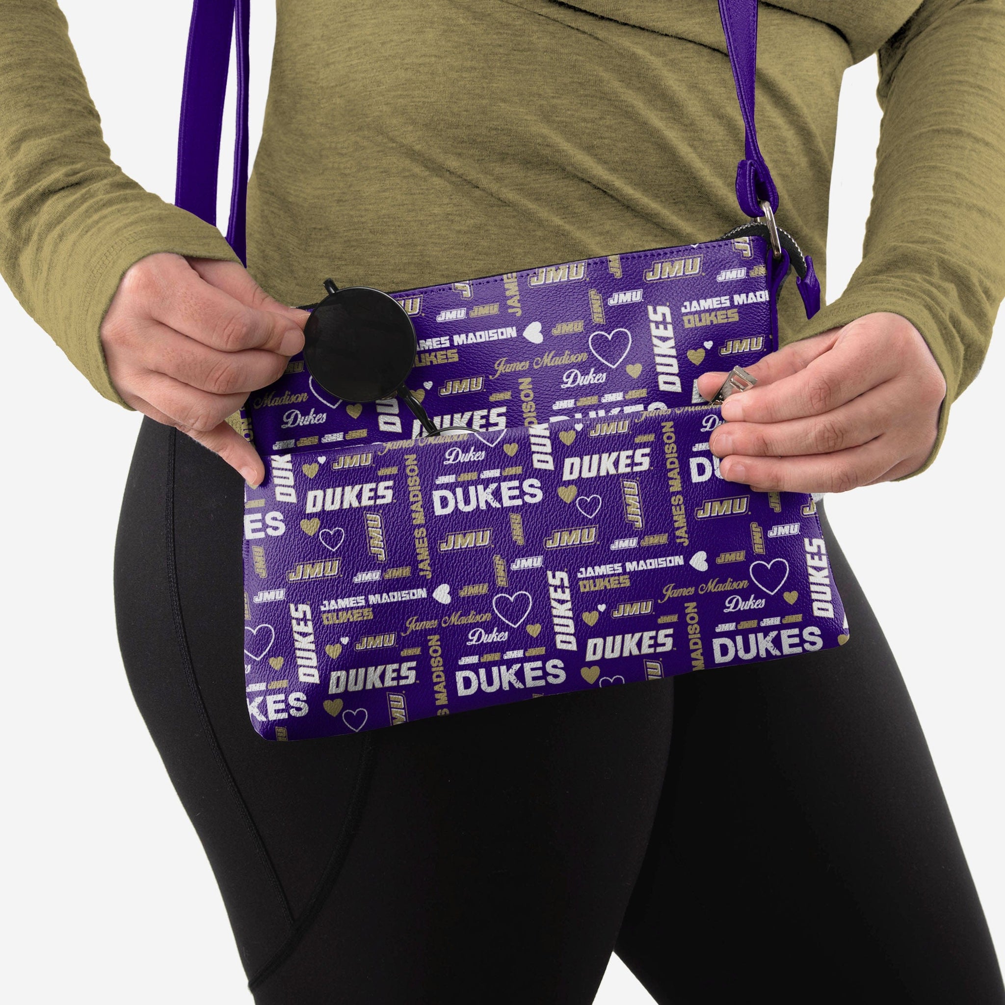Don't wear your heart on your sleeve - wear it ACROSS your sleeve every time you rock this James Madison Dukes Logo Love Crossbody Purse!