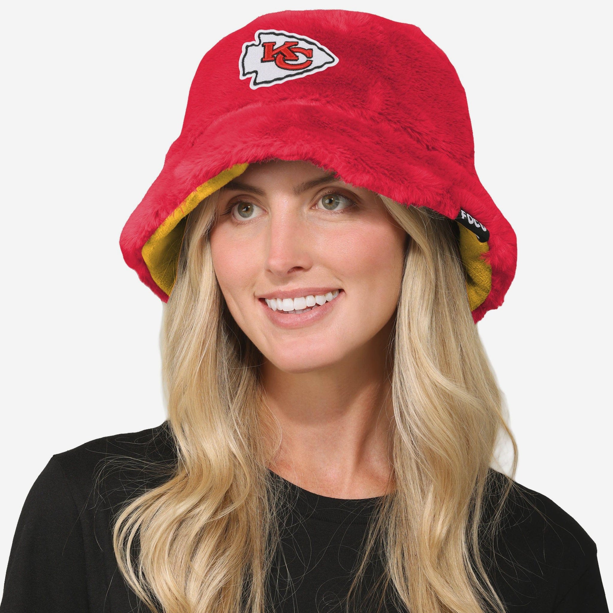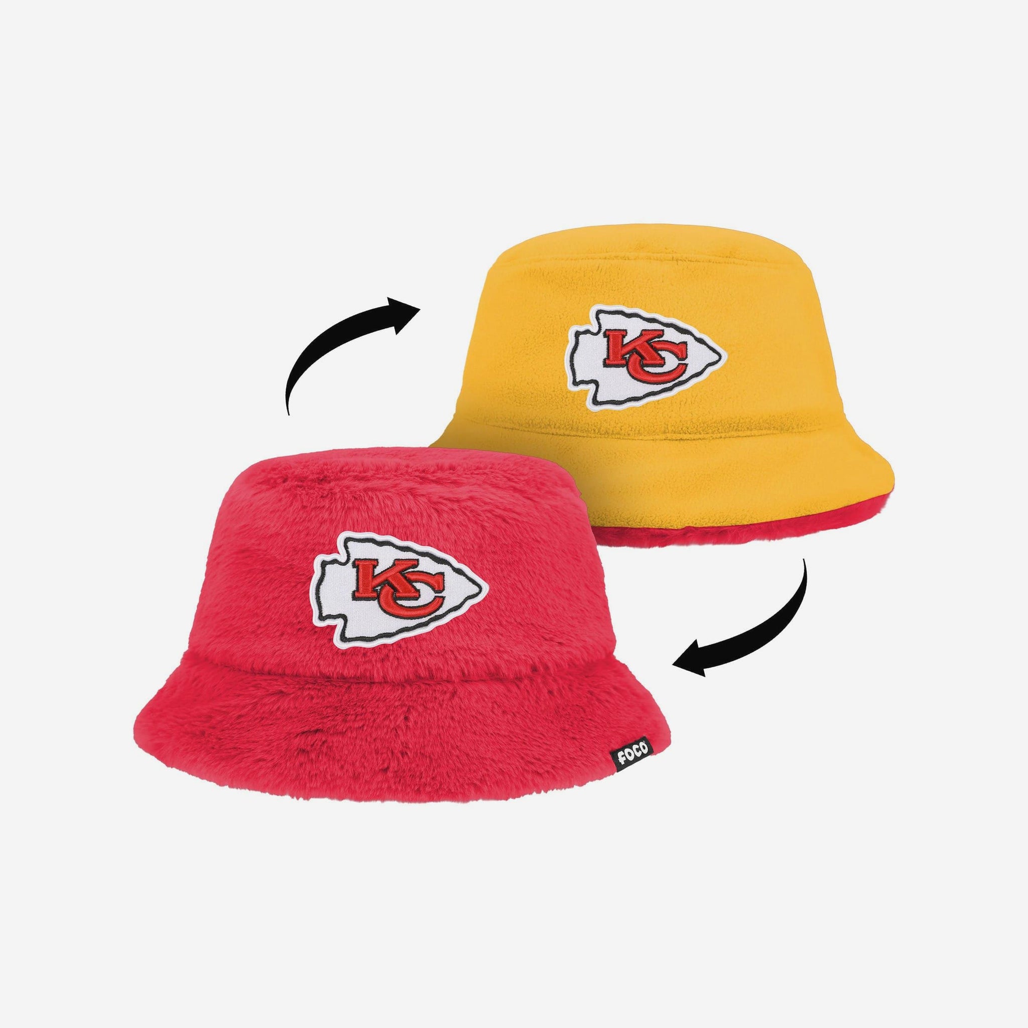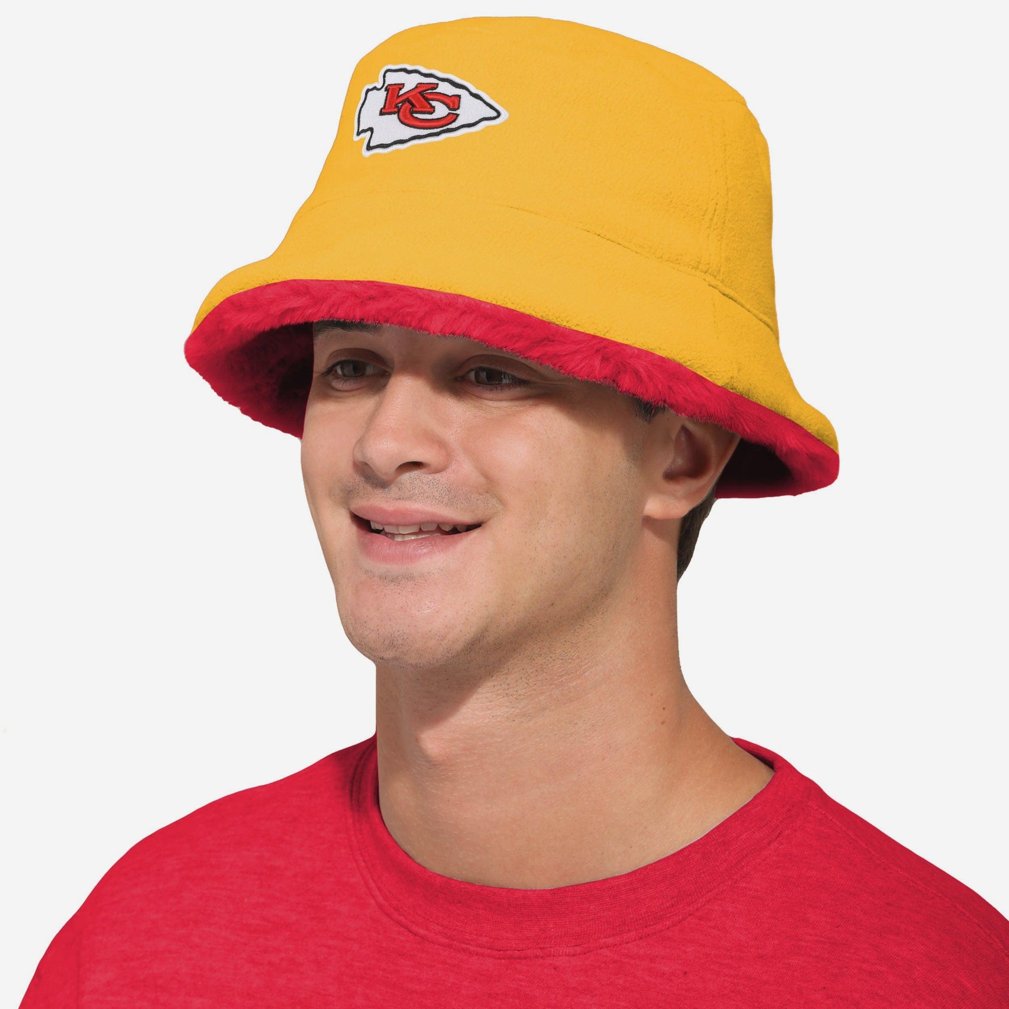 Two looks. One legend. Flip the script with the Kansas City Chiefs Reversible Faux Fur Bucket Hat. Rock the ultra-soft faux fur side when you want cozy vibes that turn heads, then reverse it to the fleece side for a chill look that still shouts team pride. Both sides feature embroidered logos and team colors, so your loyalty is loud no matter how you wear it.
