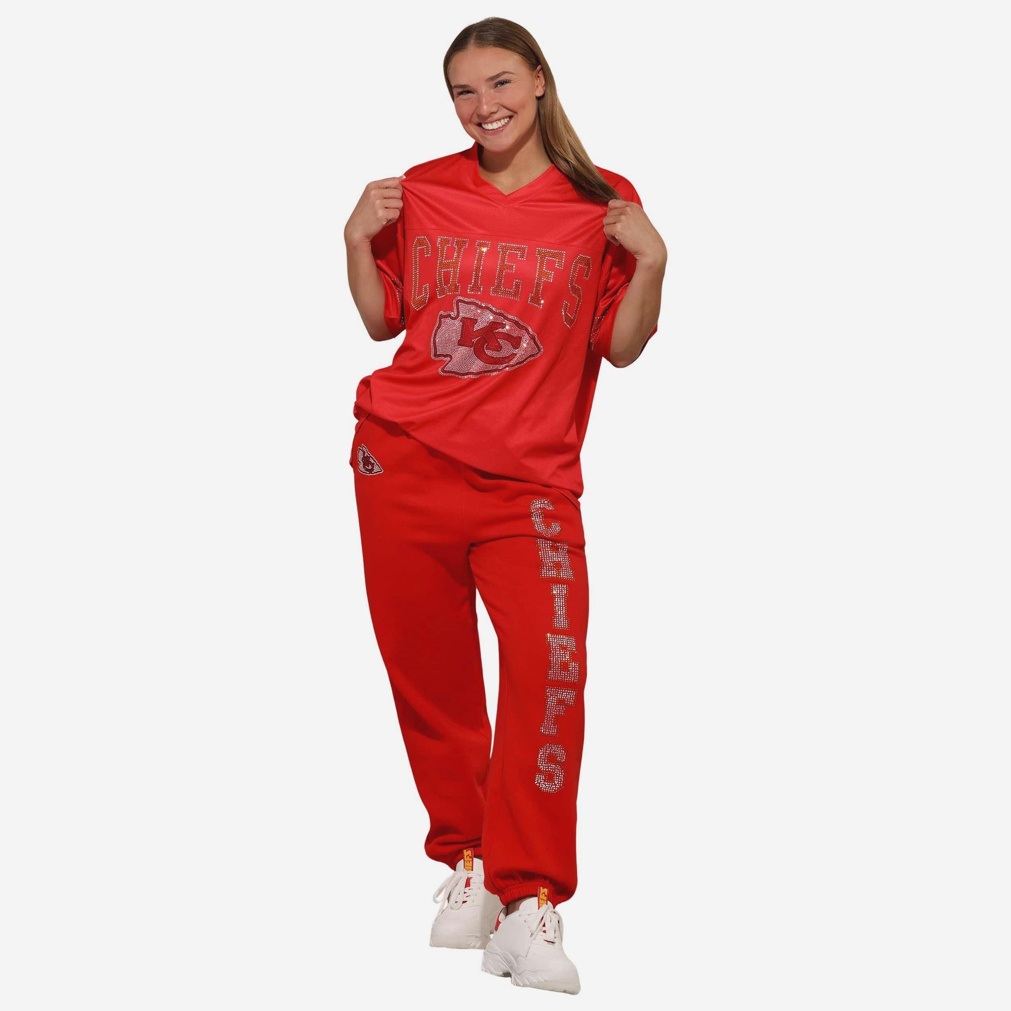 Kansas City Chiefs Womens Big Wordmark Rhinestone Sweatpants FOCO S - FOCO.com