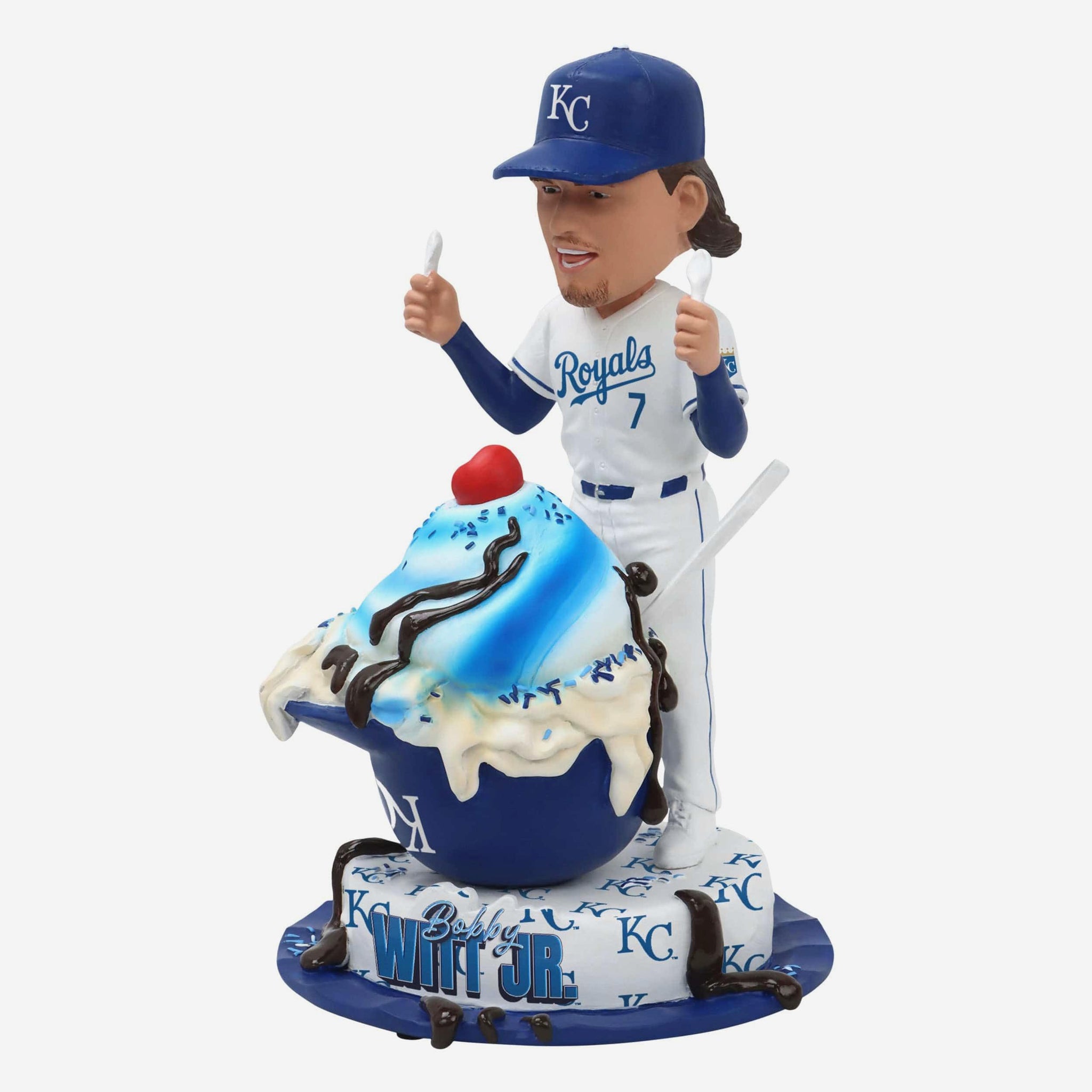 Your favorite player is serving up team spirit, one scoop at a time! The Bobby Witt Jr Kansas City Royals Ice Cream Helmet Bobblehead will be the cherry on top of your collection.