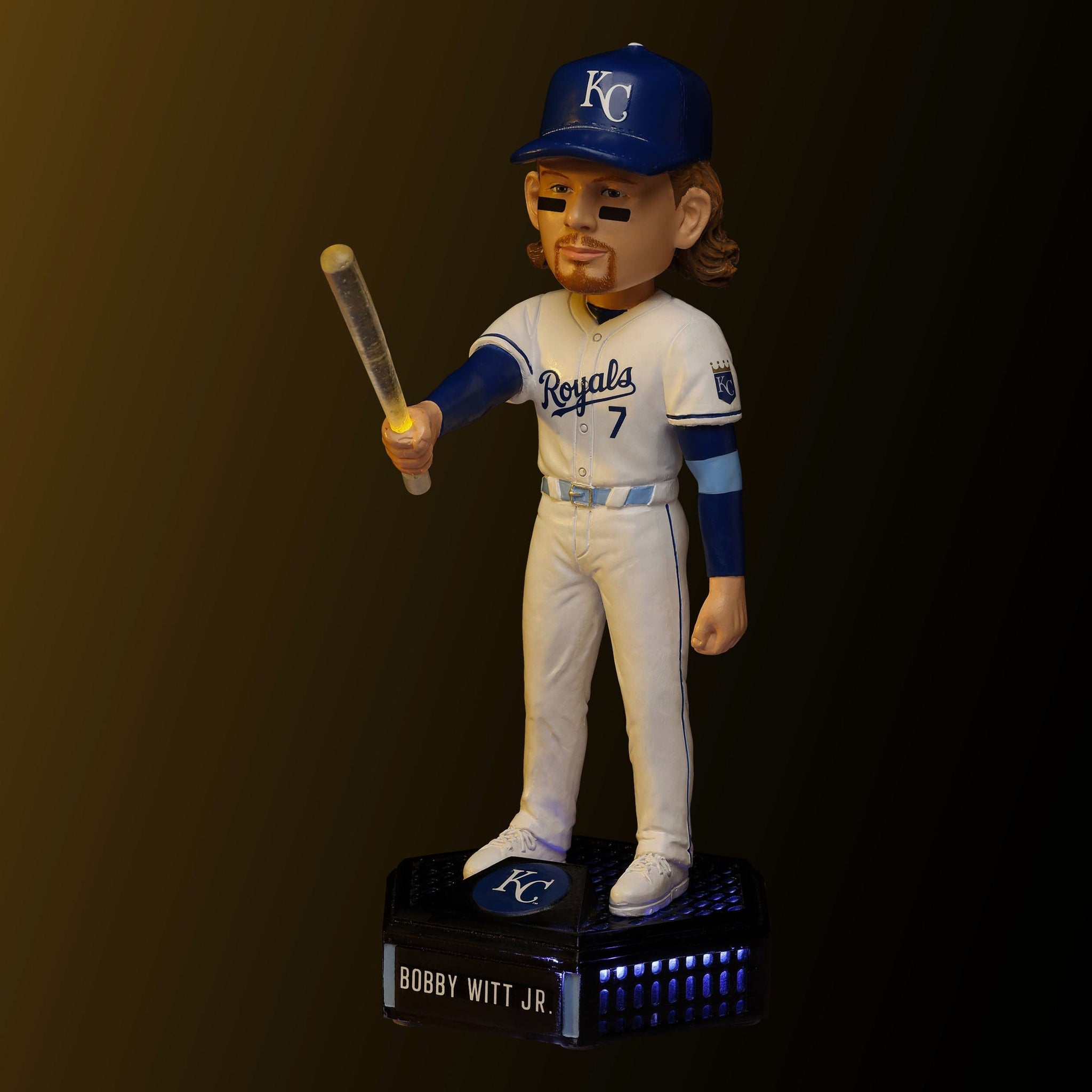 - Portrays Witt Jr. holding a team-colored light up baseball bat and wearing his white gameday uniform in an action pose, ready to bring the force and the fandom to your fancave
