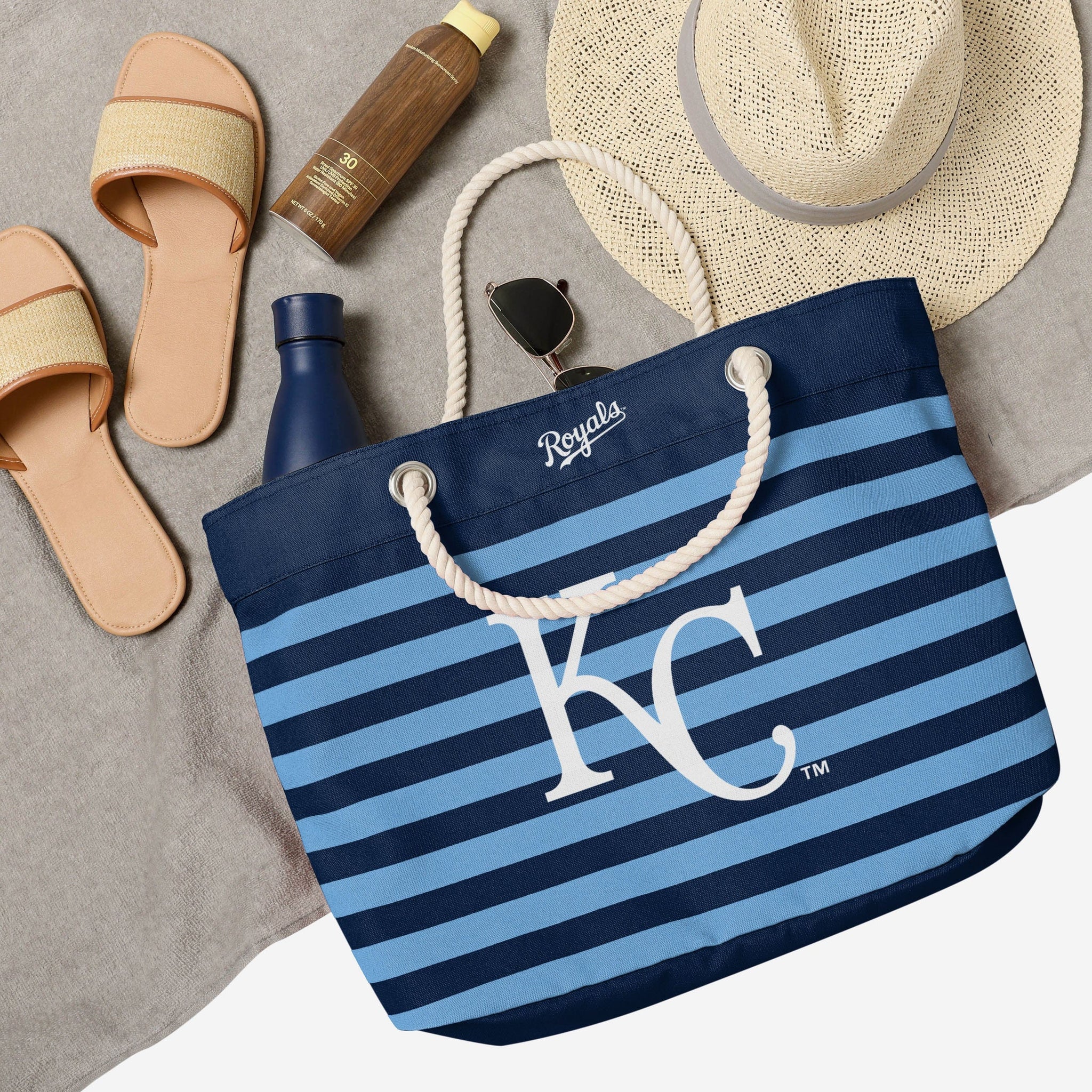You're a real fan. You've earned your stripes. Now you can show them off AND carry the team with this Kansas City Royals Nautical Stripe Tote Bag.