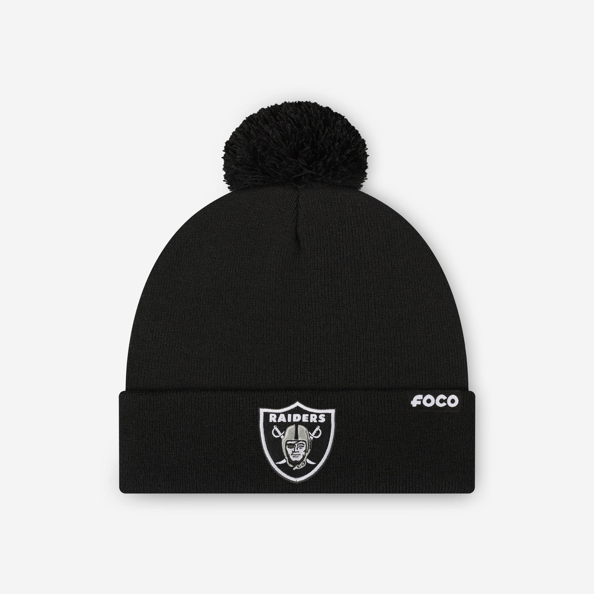 Las Vegas Raiders Basic Primary Logo Pom Beanie FOCO Black - FOCO.com