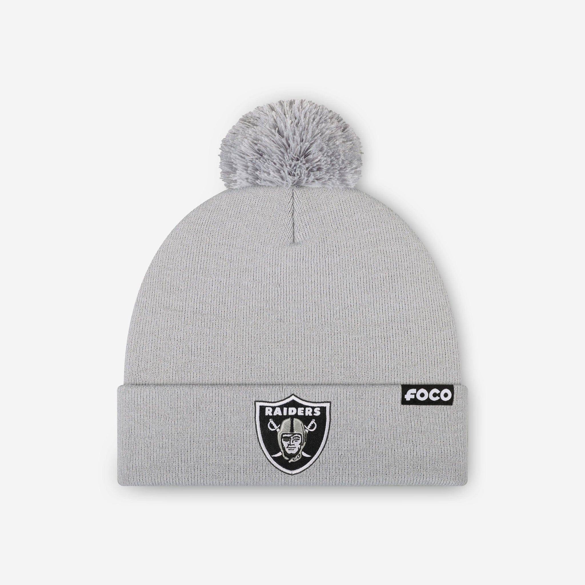 Las Vegas Raiders Basic Primary Logo Pom Beanie FOCO Silver - FOCO.com