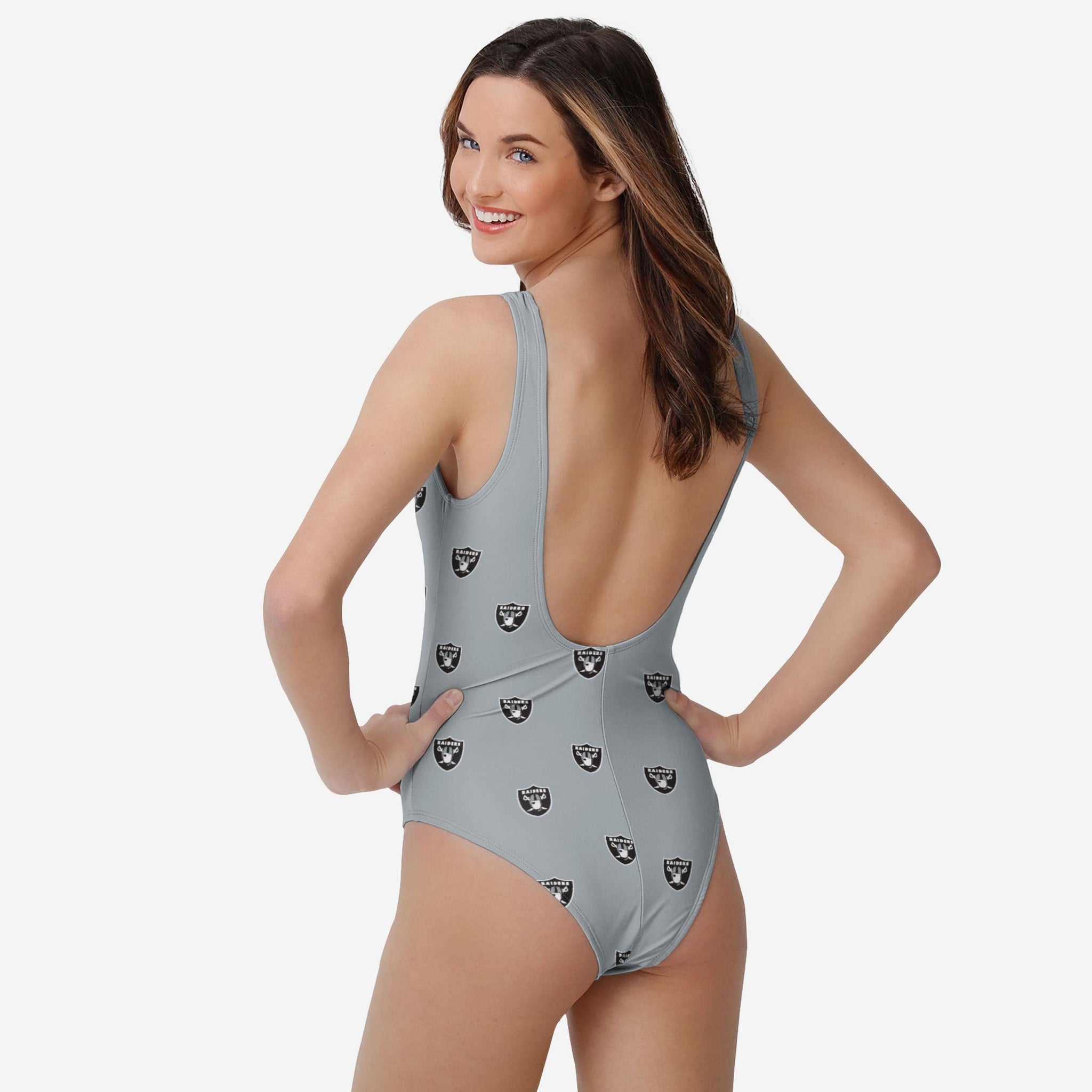 Meet your newest summer love! Everyone will shore-ly know where your allegiances lie when you're rocking this Las Vegas Raiders Women's Mini Print One Piece Bathing Suit at the beach or by the pool.