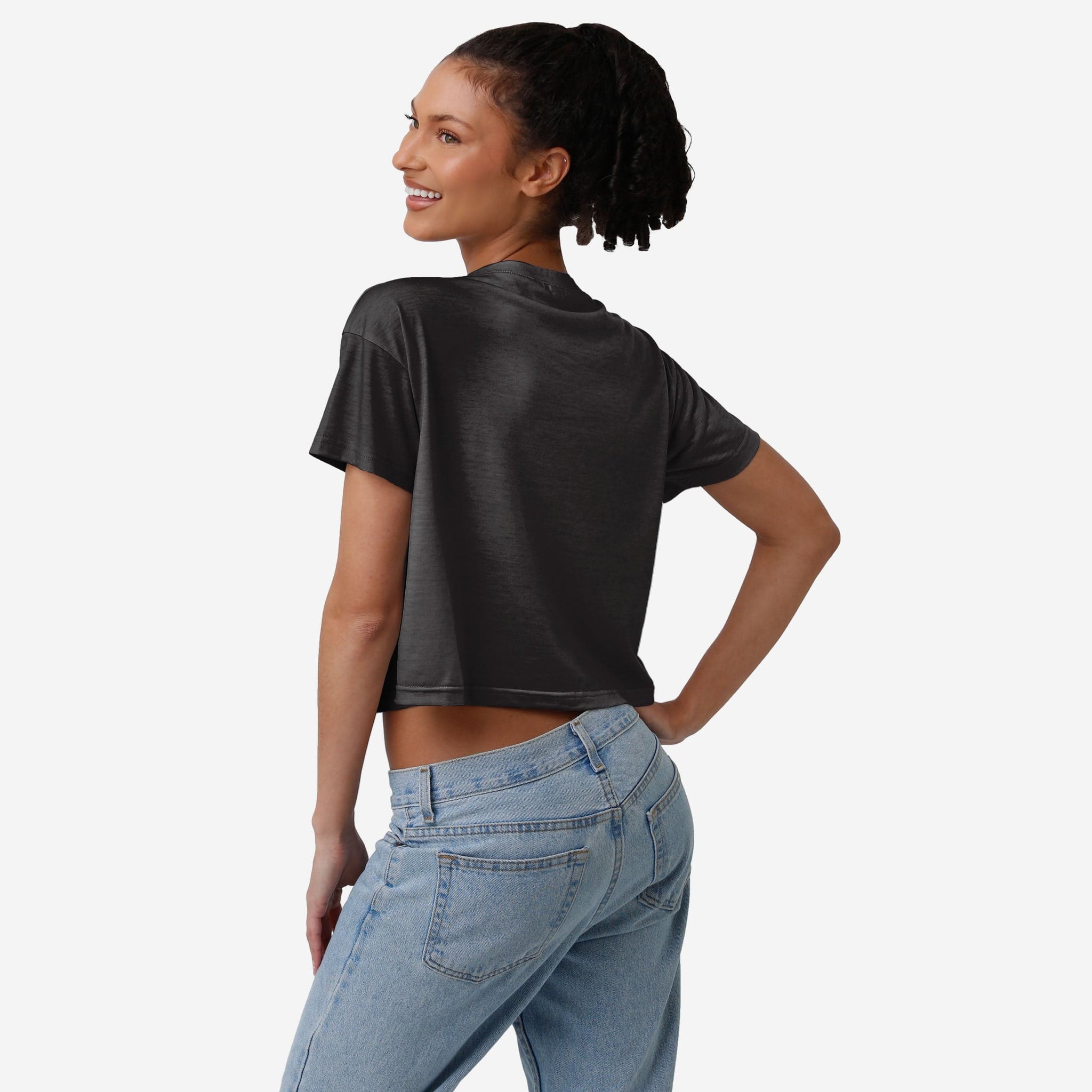 Meet your new favorite tailgate fit. Keep your cool while you're chilling and grilling in this Las Vegas Raiders Women's Solid Big Logo Crop Top!