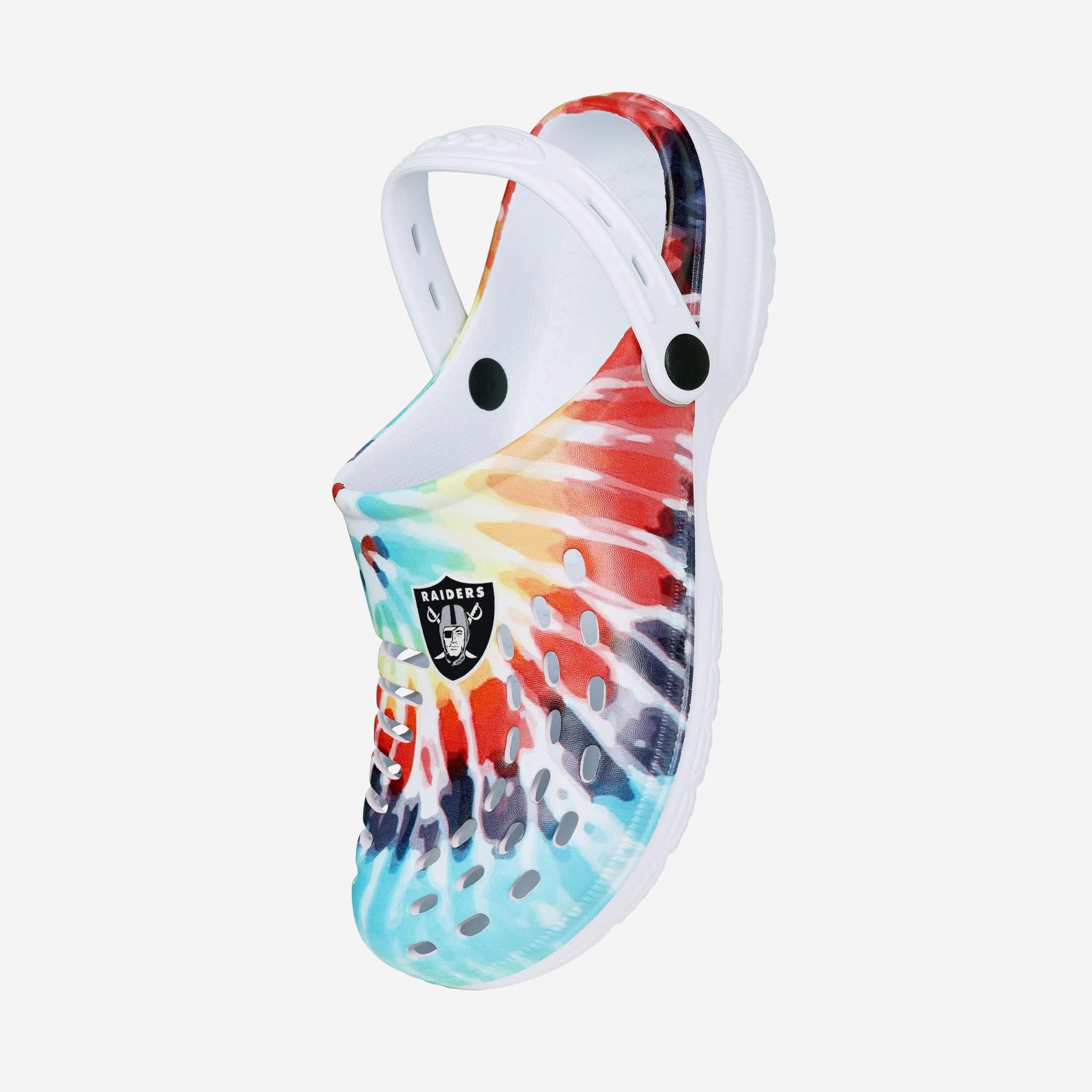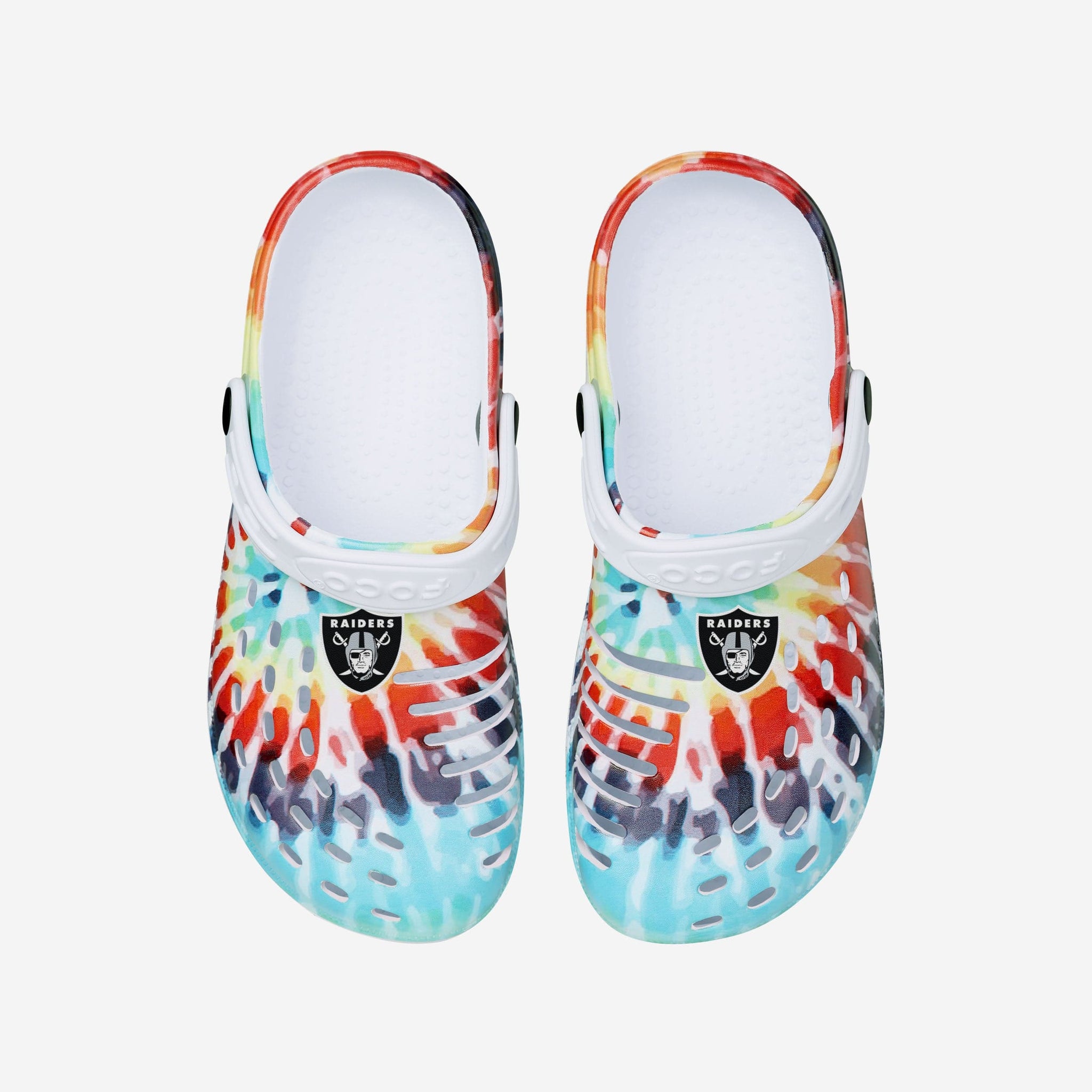 Peace. Love. Tie-dye. Step back in time with some style from yesteryear by rocking these Las Vegas Raiders Women's Tie-Dye Clogs with Straps.