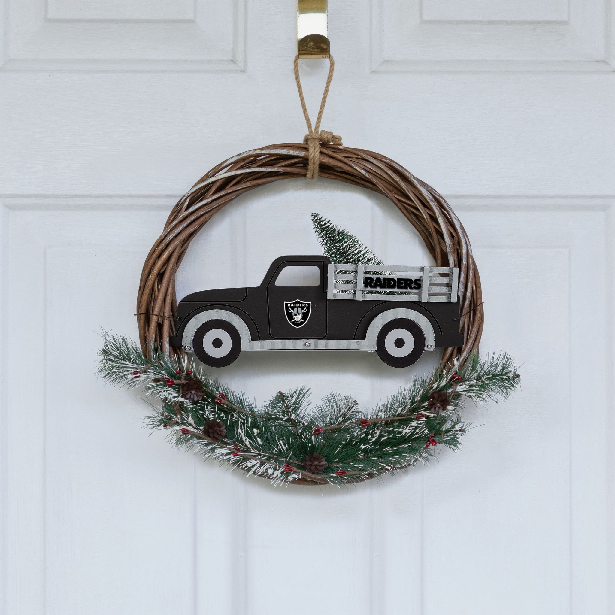 Special delivery! Hit the gas and zoom into the holidays by proudly displaying this Las Vegas Raiders Wreath with Truck when you're decorating your home!