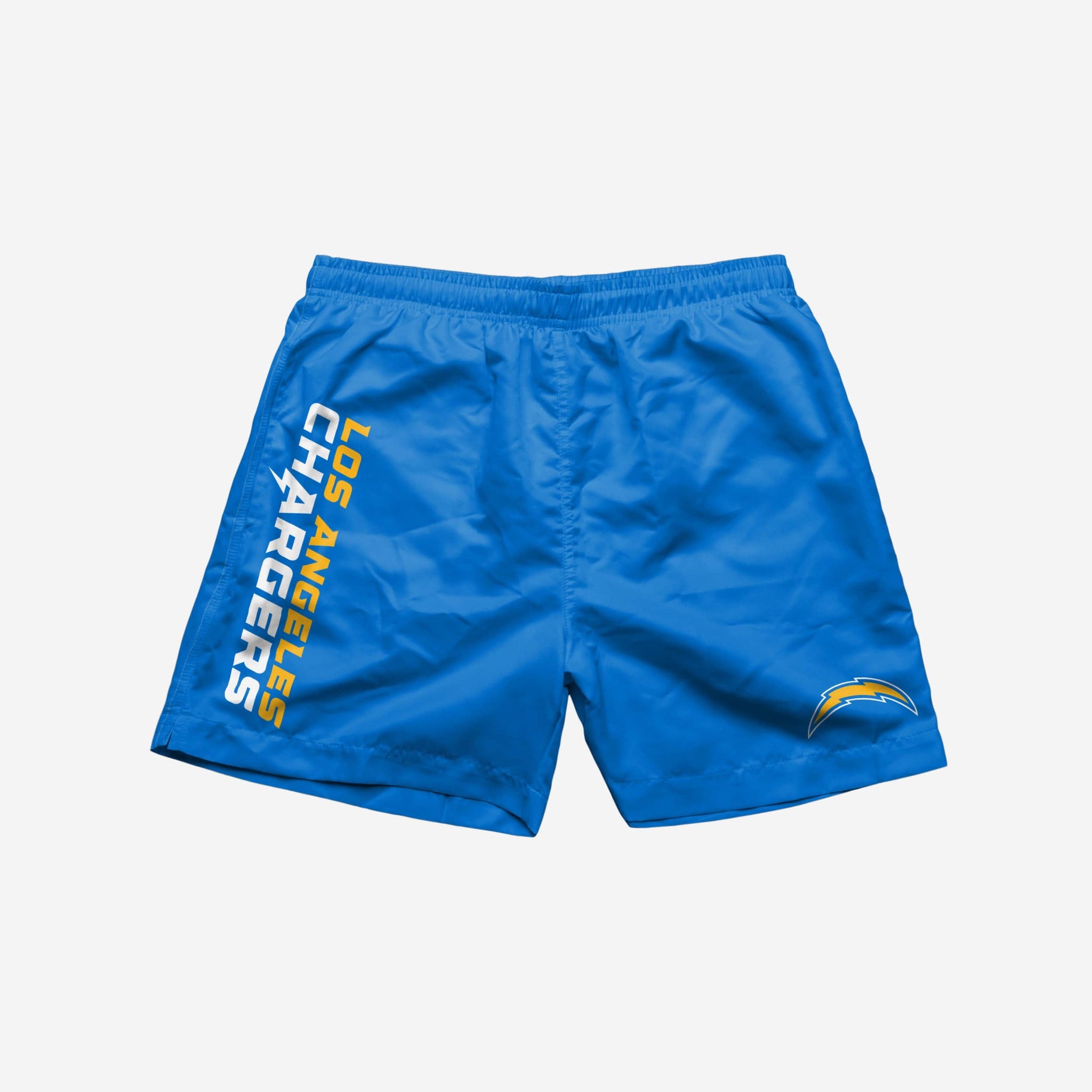 THIS is the summer style you've been craving. Get ready for some fun in the sun by rocking these Los Angeles Chargers Big Wordmark Solid Swimming Trunks.